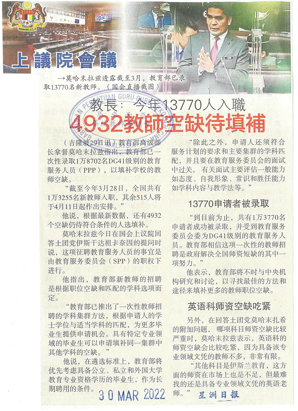 教长:今年13770人入职 4932教师空缺待填补 WhatsApp 上一篇文章: 家长:回校上网课很讽刺“老师没接种仍禁进班?” 上一页 下一篇文章: 7师生确诊 出席率低 启智家长或和平请愿 下一页