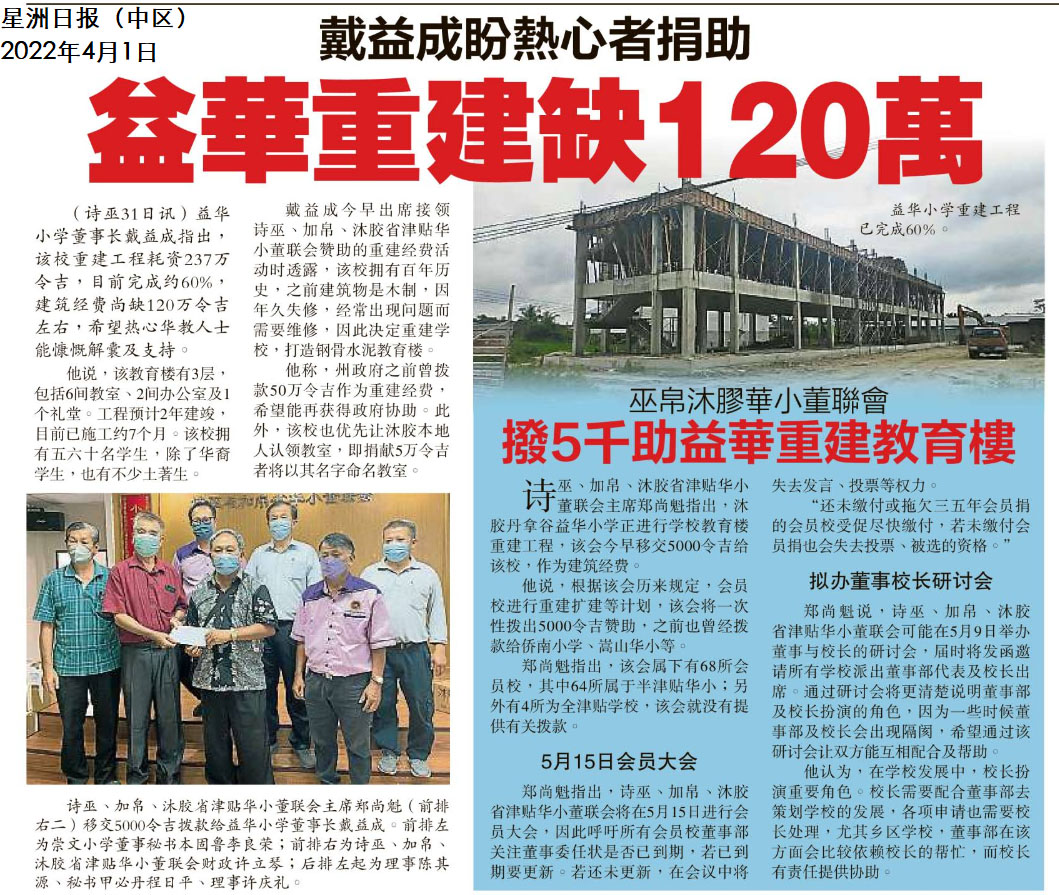 戴益成盼热心者捐助 益华重建缺120万