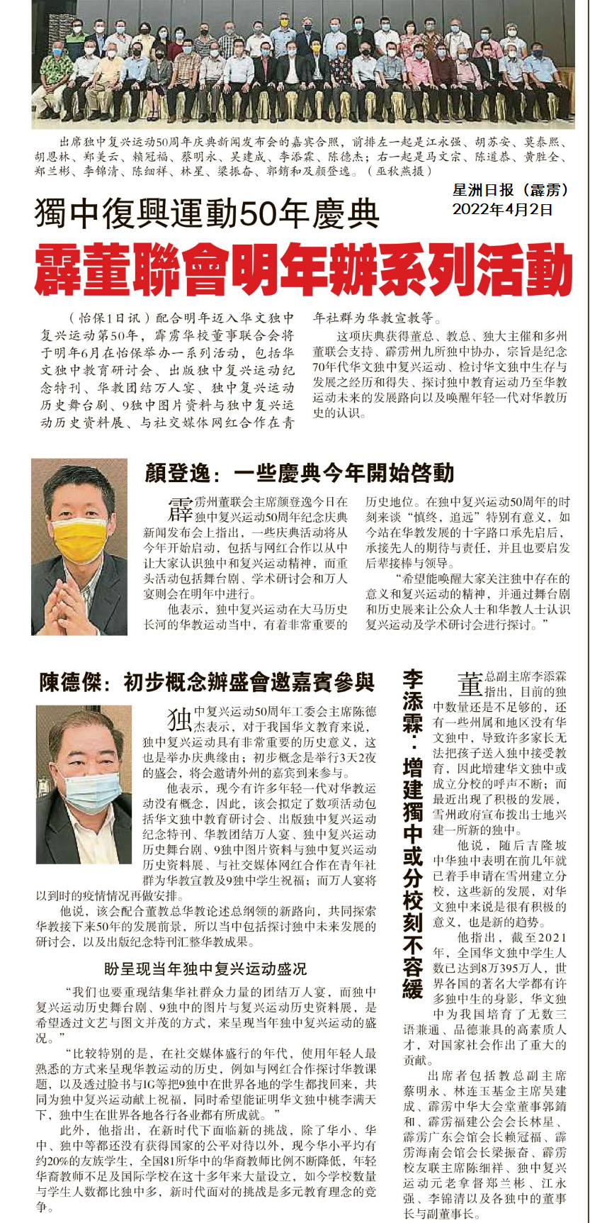 独中复兴运动50年庆典 霹董联会明年办系列活动