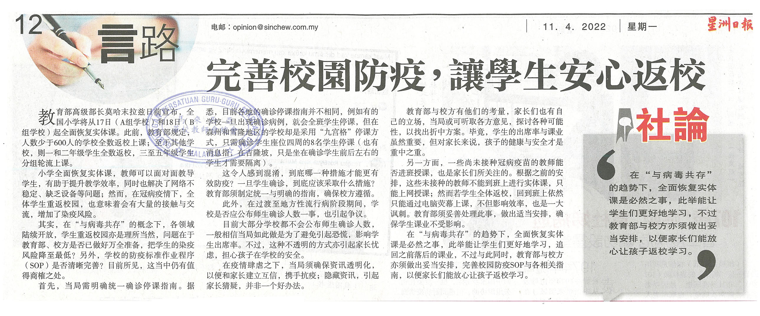 上一篇文章: 郭大雄:尽早完成迁建 班珍华小盼获献地