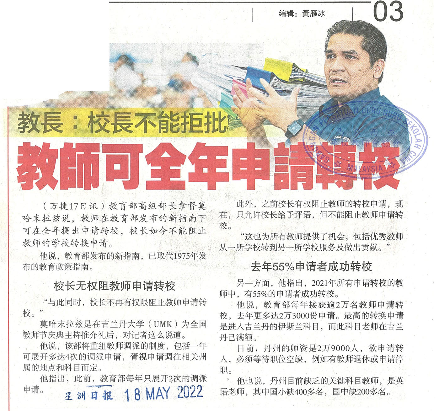 上一篇文章: 苏基敏祖基:教师申请调换 校长确没定夺权