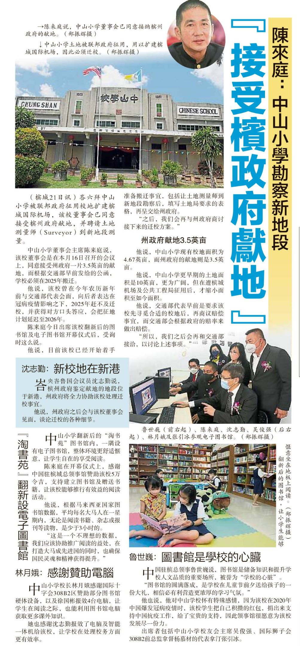 陈来庭:中山小学勘察新地段 接受槟政府献地