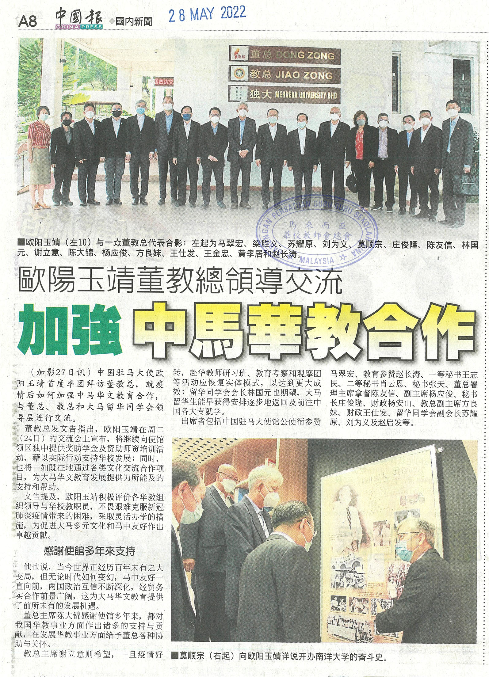 欧阳玉靖董教总领导交流 加强中马华教合作
