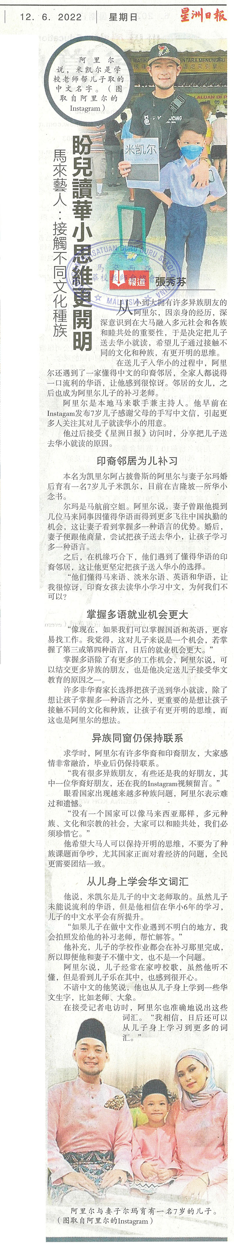 马来艺人:接触不同文化种族 盼儿读华小思维更开明 WhatsApp 上一篇文章: 烧烤竹筒饭不简单 华小生体验马来民族文化 上一页 下一篇文章: 合约教师申请者:须依学位选执教科目“美术音乐想选不能选” 下一页