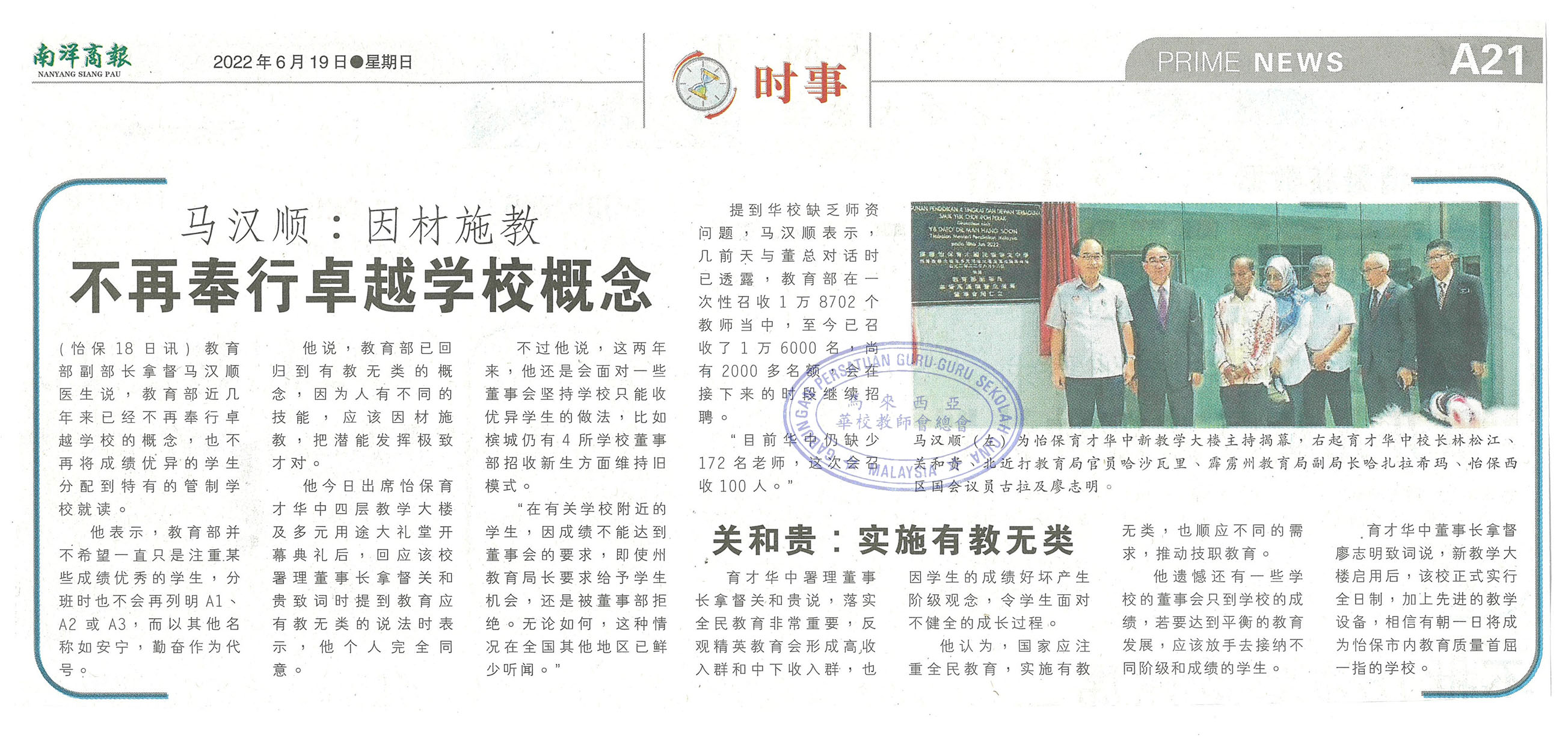 马汉顺:因材施教 不再奉行卓越学校概念