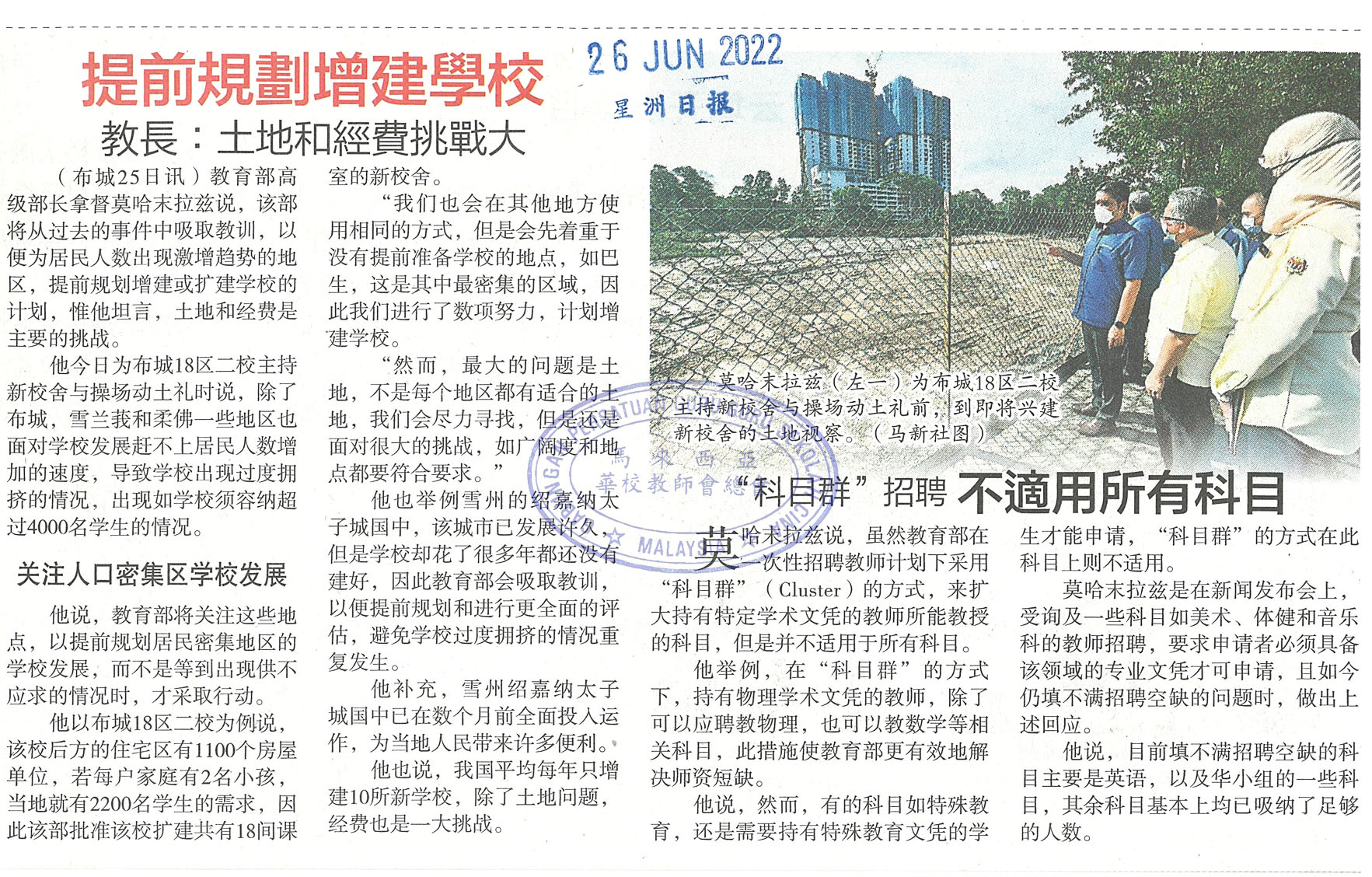 教长:提前规划增建学校 土地和经费挑战大