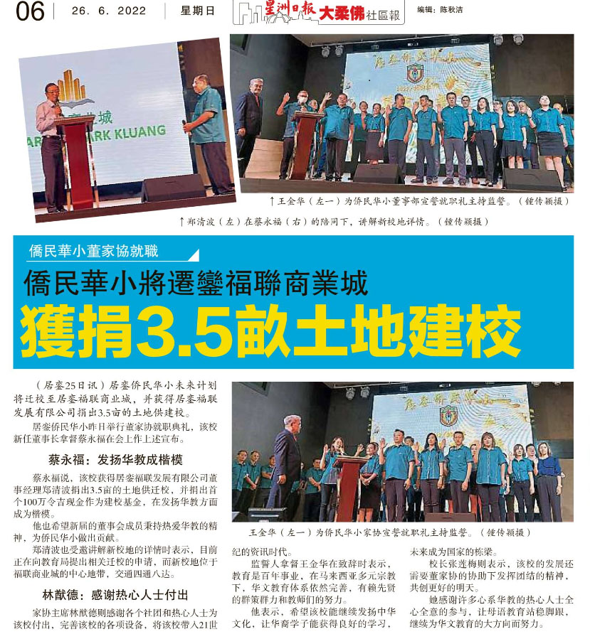侨民华小将迁銮福联商业城 获捐3.5亩土地建校