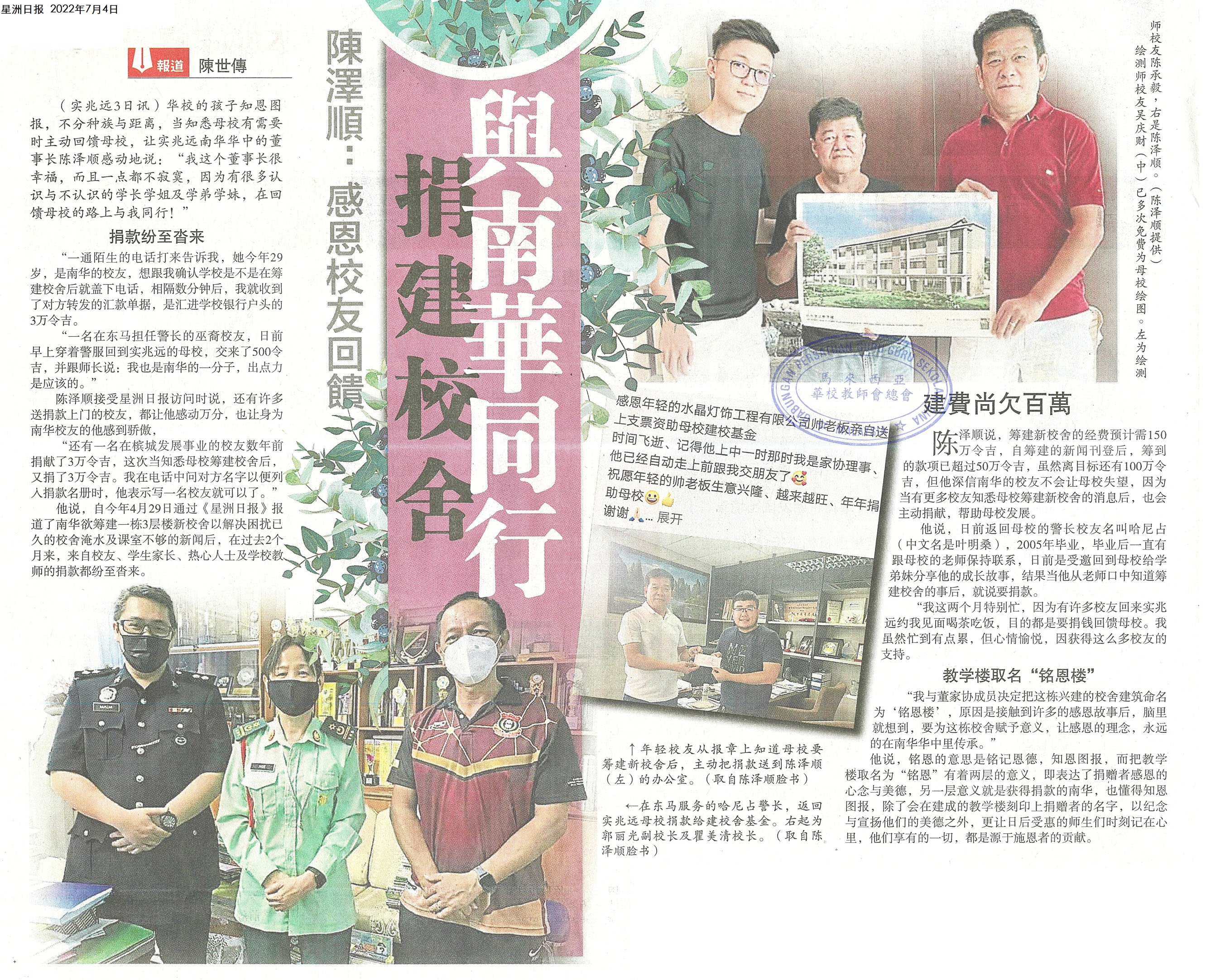 陈泽顺:感恩校友回馈 捐建校舍与南华同行