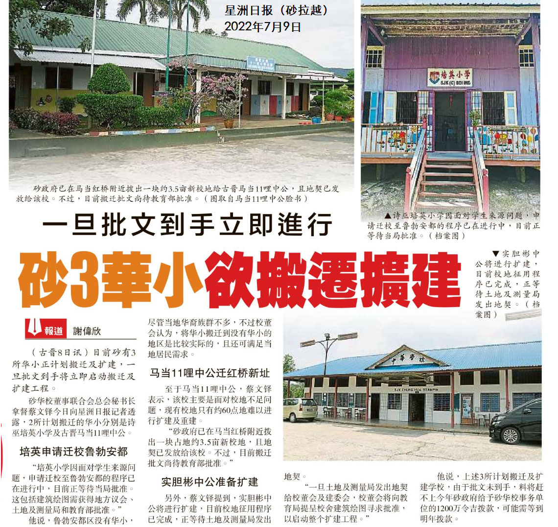 一旦批文到手立即进行 砂3华小欲搬迁扩建