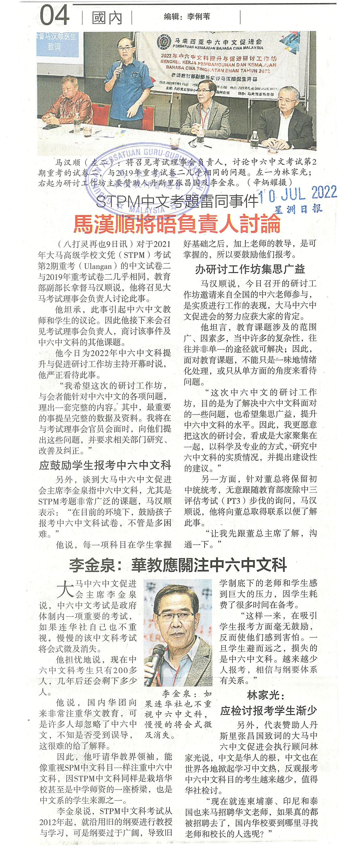 STPM中文考题雷同事件 马汉顺将晤负责人讨论