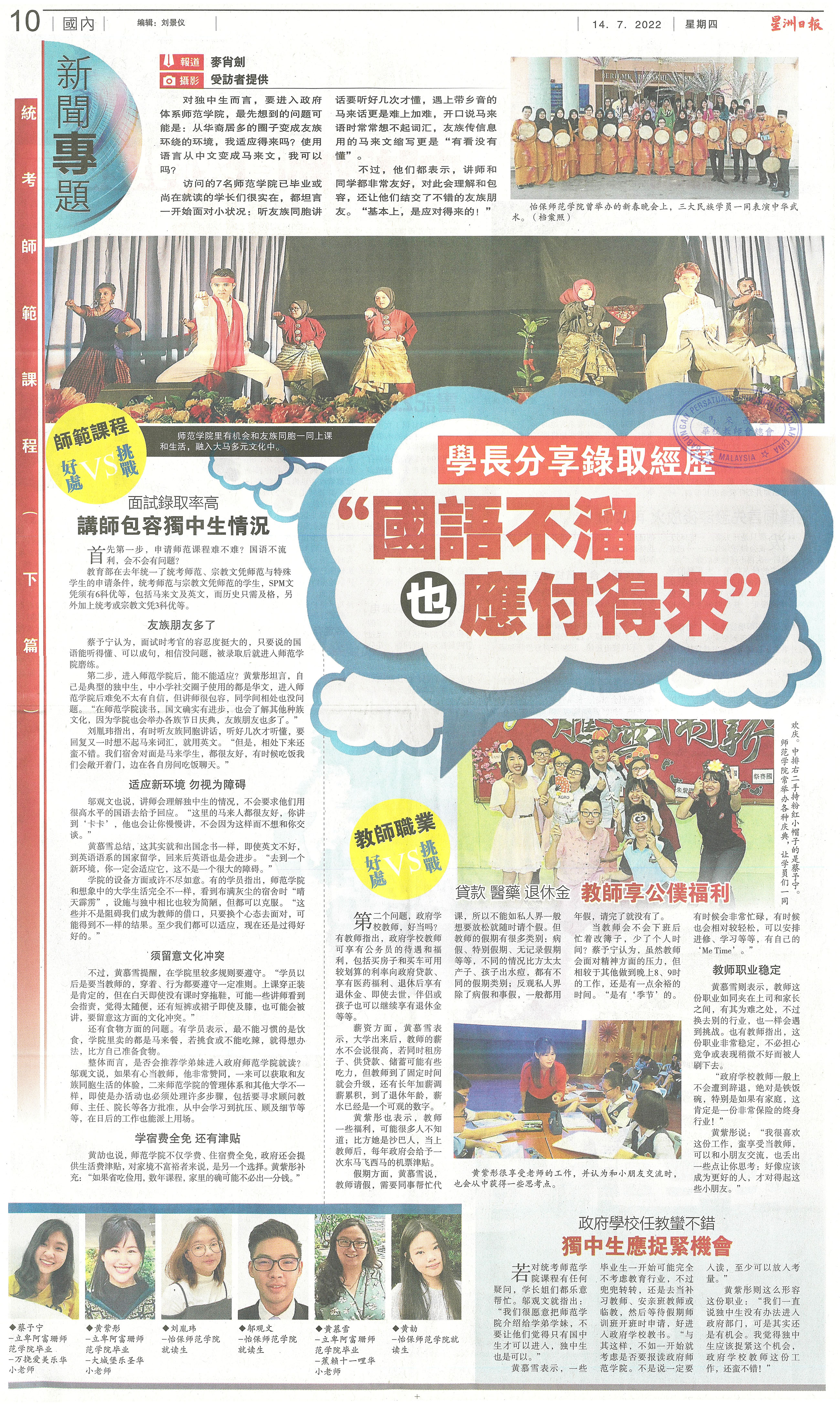 学长分享录取经历 国语不溜也应付得来 WhatsApp 上一篇文章: 教育部招聘 国际学校 私立学校也抢人 独中面对师资流失压力 上一页 下一篇文章: 统考师范课程仍需多宣传 多一人知晓 多一人报读 下一页