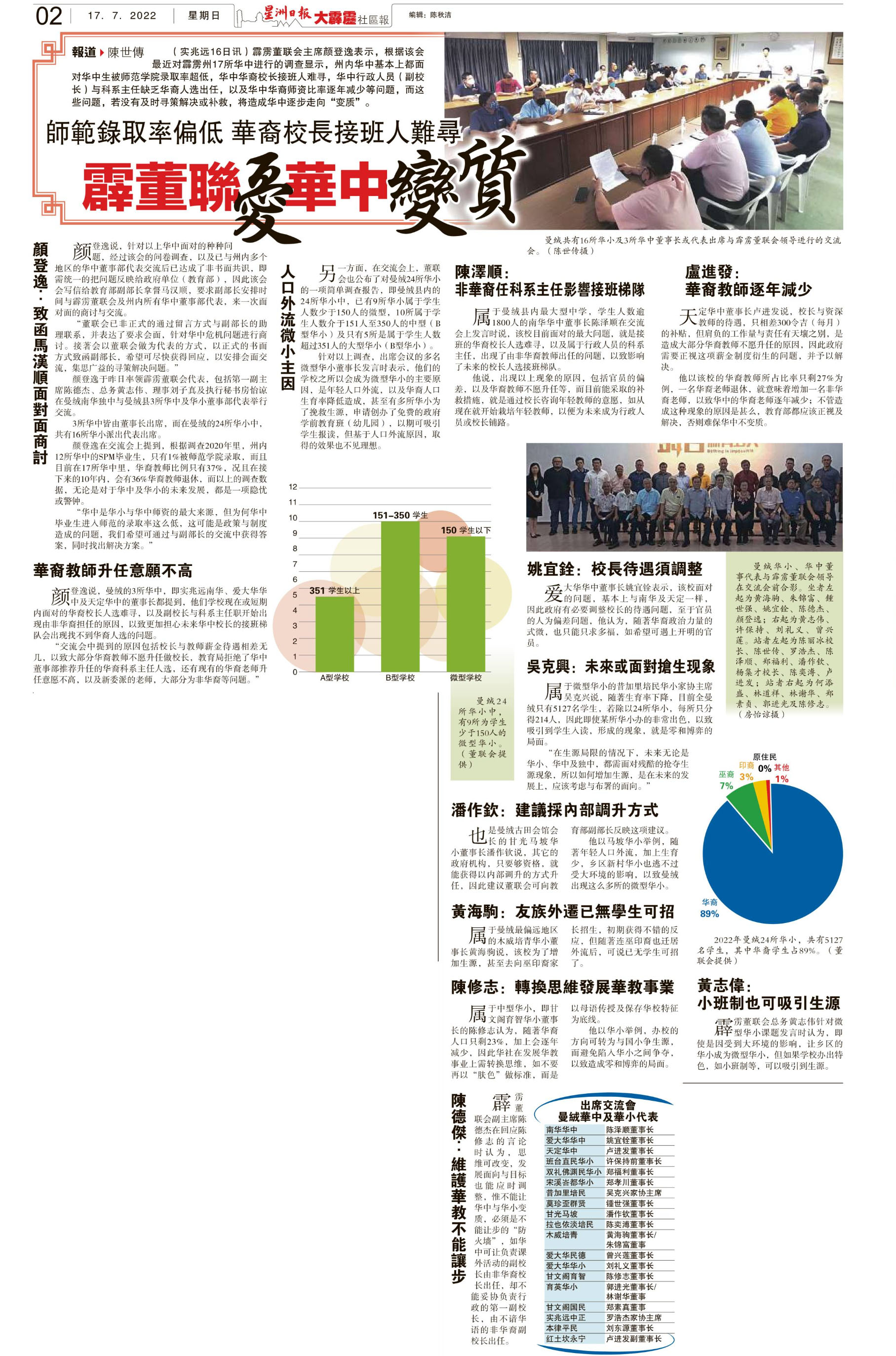 师范录取率偏低 华裔校长接班人难寻 霹董联忧华中变质 WhatsApp 上一篇文章: 陈大锦:申请学校维修拨款 华小董事成员须注册 上一页 下一篇文章: 22日 第三场甲华校董事交流会 聚焦校董注册事宜 下一页