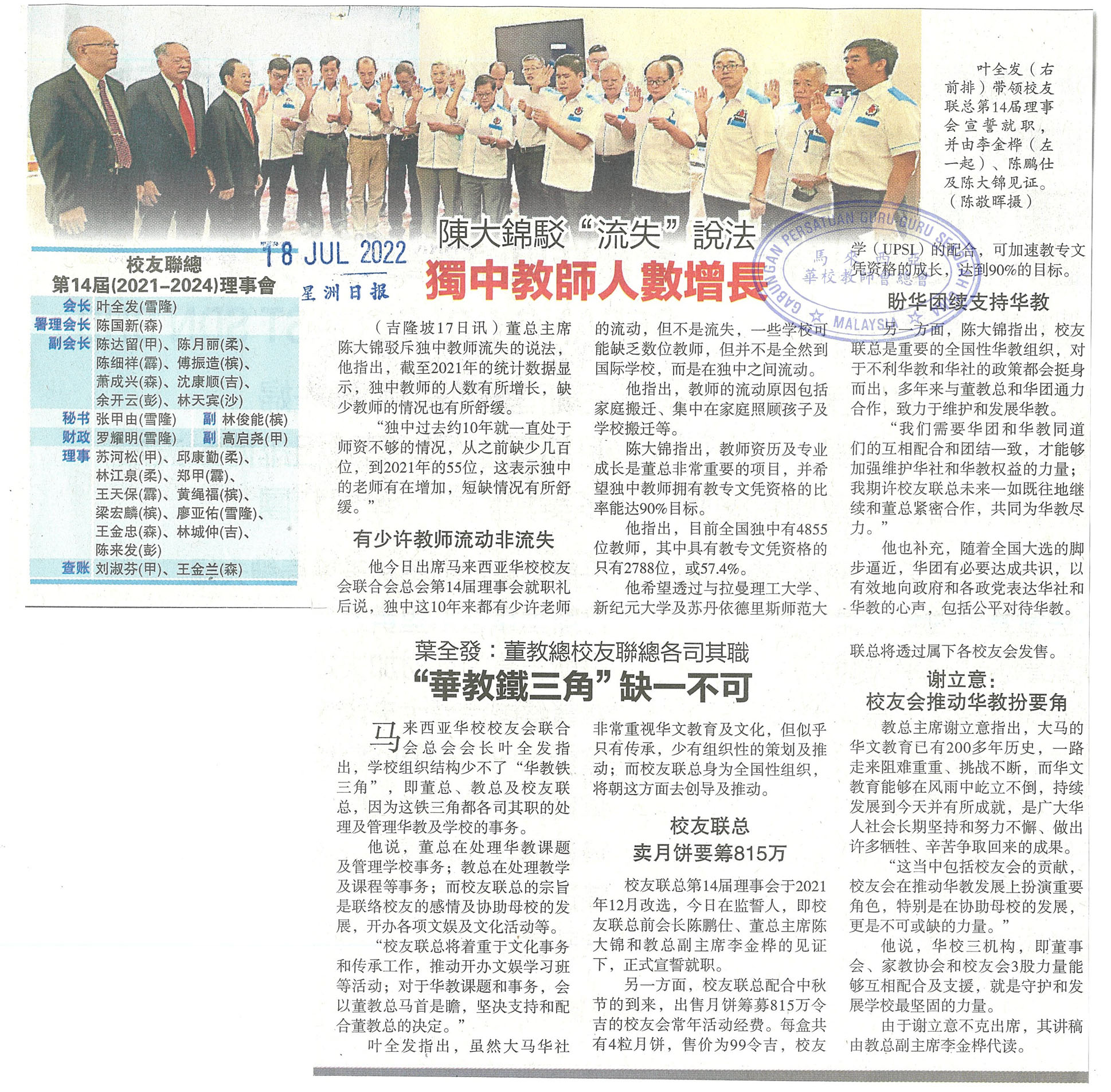 陈大锦驳“流失”说法 独中教师人数增长