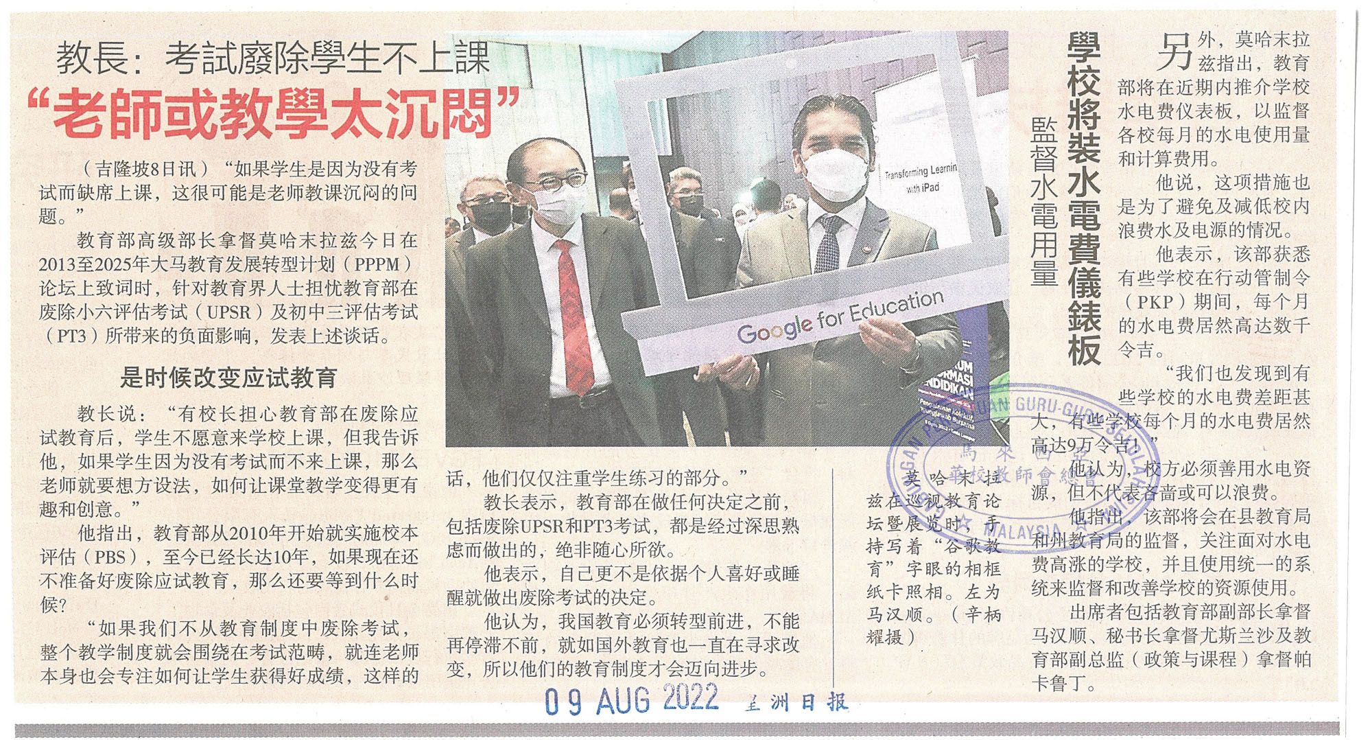 教长:考试废除学生不上课“老师或教学太沉闷”
