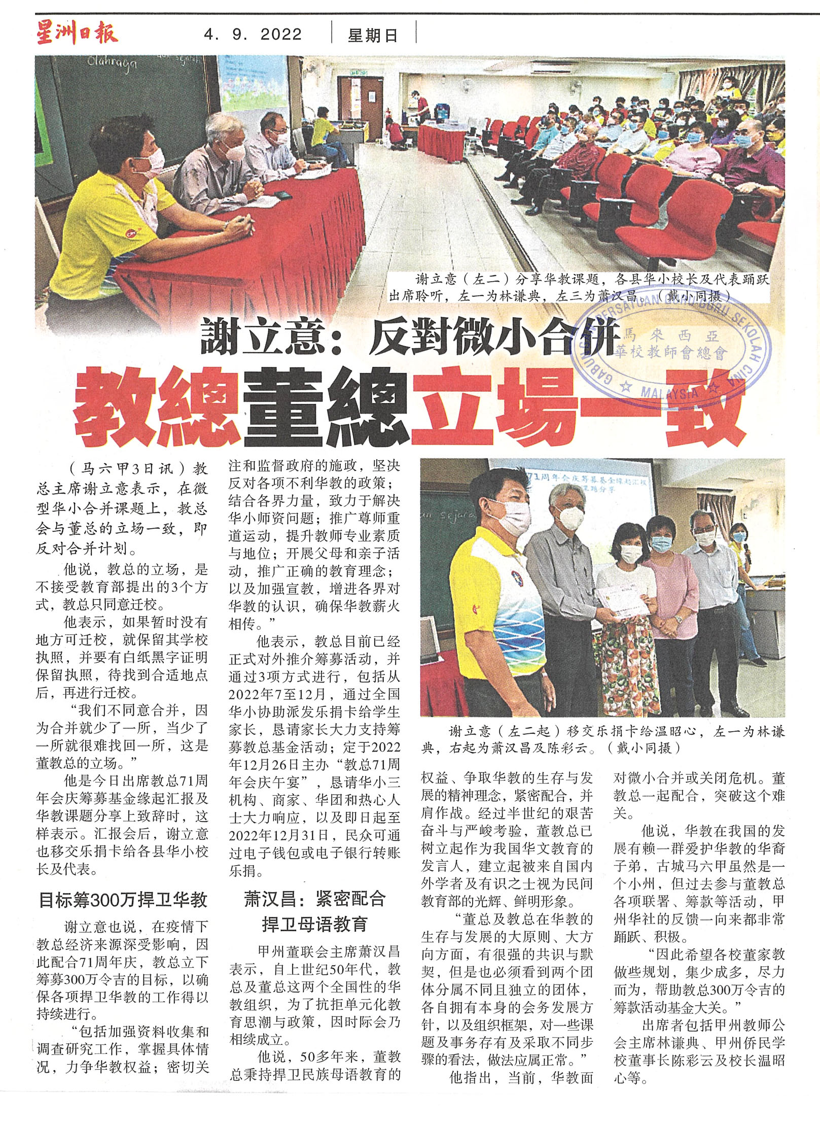 谢立意:反对微小合并 教总董总立场一致