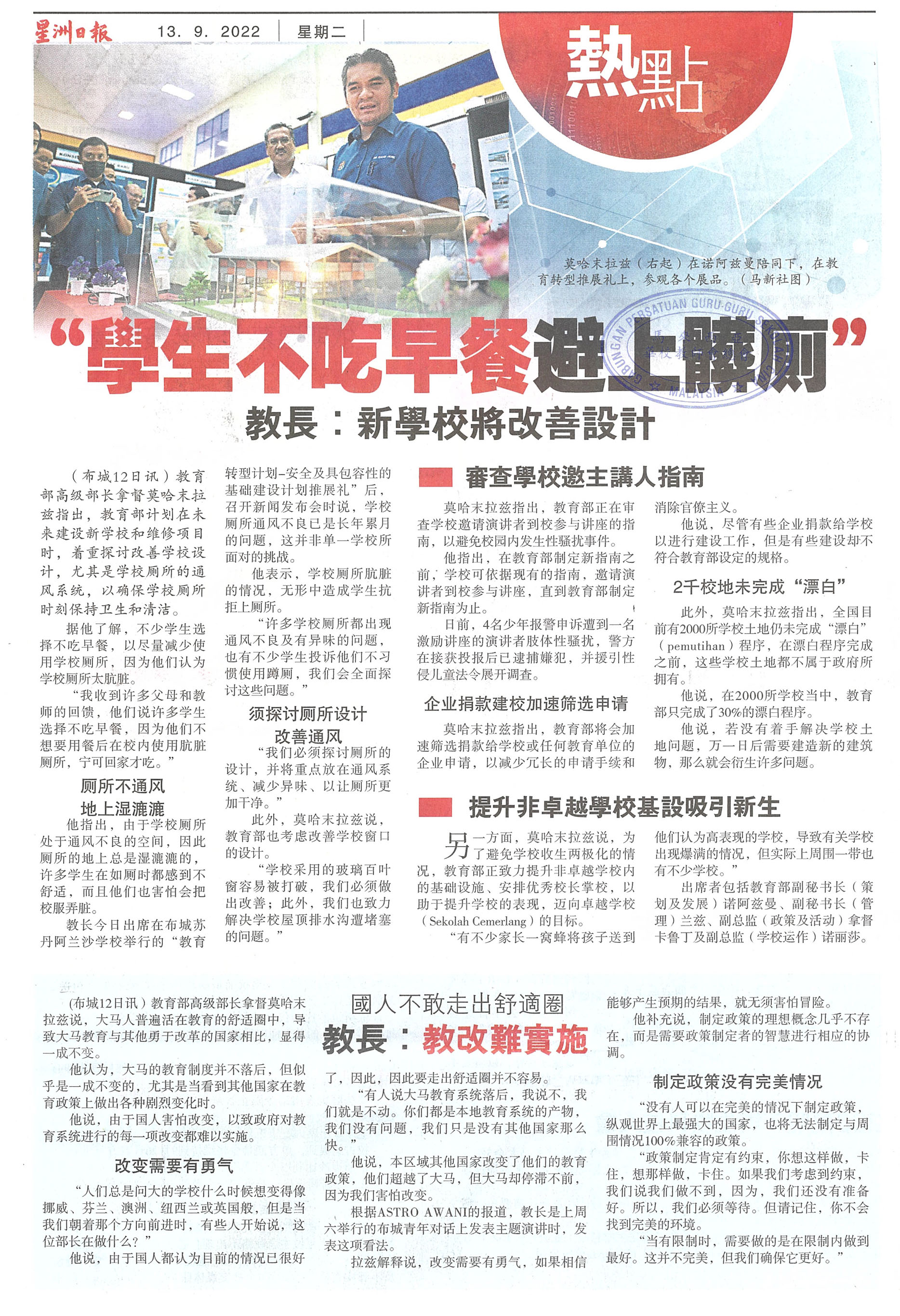 学生不吃早餐避上厕所 教长:新学校将改善设计