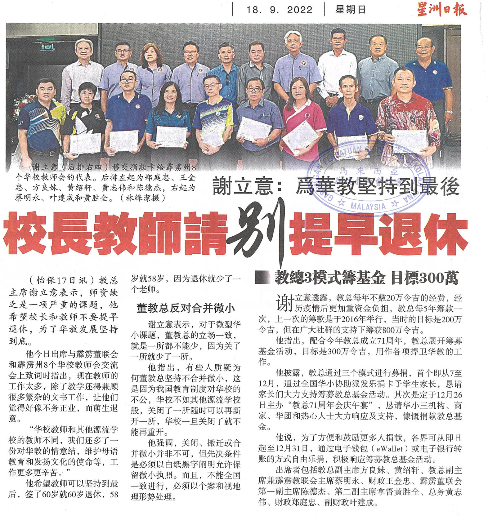 谢立意:为华教坚持到最后 校长教师请别提早退休 WhatsApp 上一篇文章: 陈德杰:少子化人口外流 霹雳91微小西马最多 上一页 下一篇文章: 建议合并微小却无详情 廖秋强:教育部让董家协不安 下一页