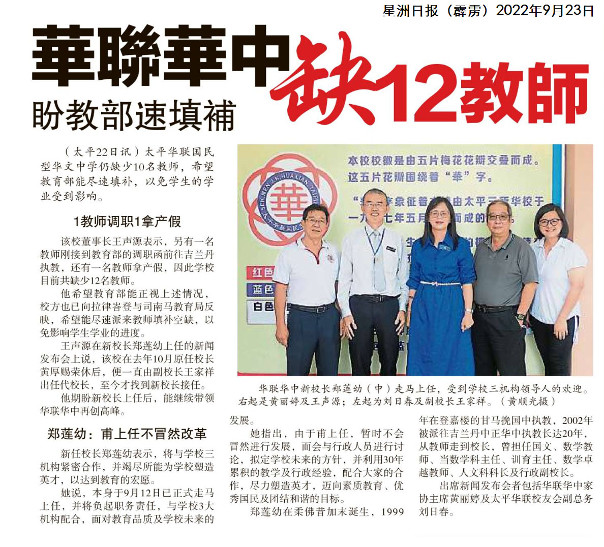 华联华中缺12教师 盼教部速填补 WhatsApp 上一篇文章: 【教总问卷】95.5%华小教师:小学年终评估华文科应纳入考题库 吁教育部一视同仁 上一页 下一篇文章: 懂中文有优势出路广 马来女生感谢父母开明 下一页