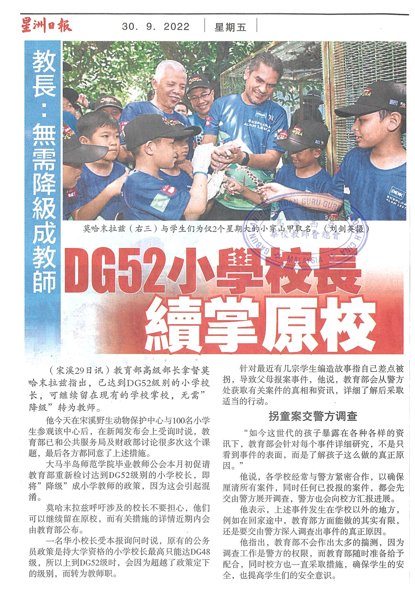 教长:无需降级成教师 DG52小学校长续掌原校 WhatsApp 上一篇文章: 冼华隆:曾投诉没向教育局呈会议记录 董事部没建议调走廖燕燕 上一页 下一篇文章: 埔地华小校长廖燕燕被调走 家长促教育局收回成命 下一页