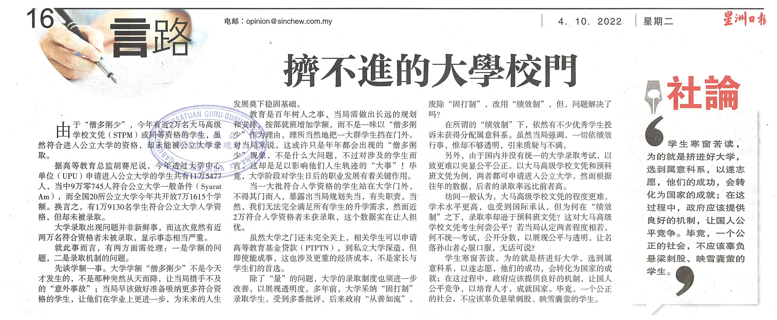 上一篇文章: 学生暴增食堂容不下 教长:教部设法解决