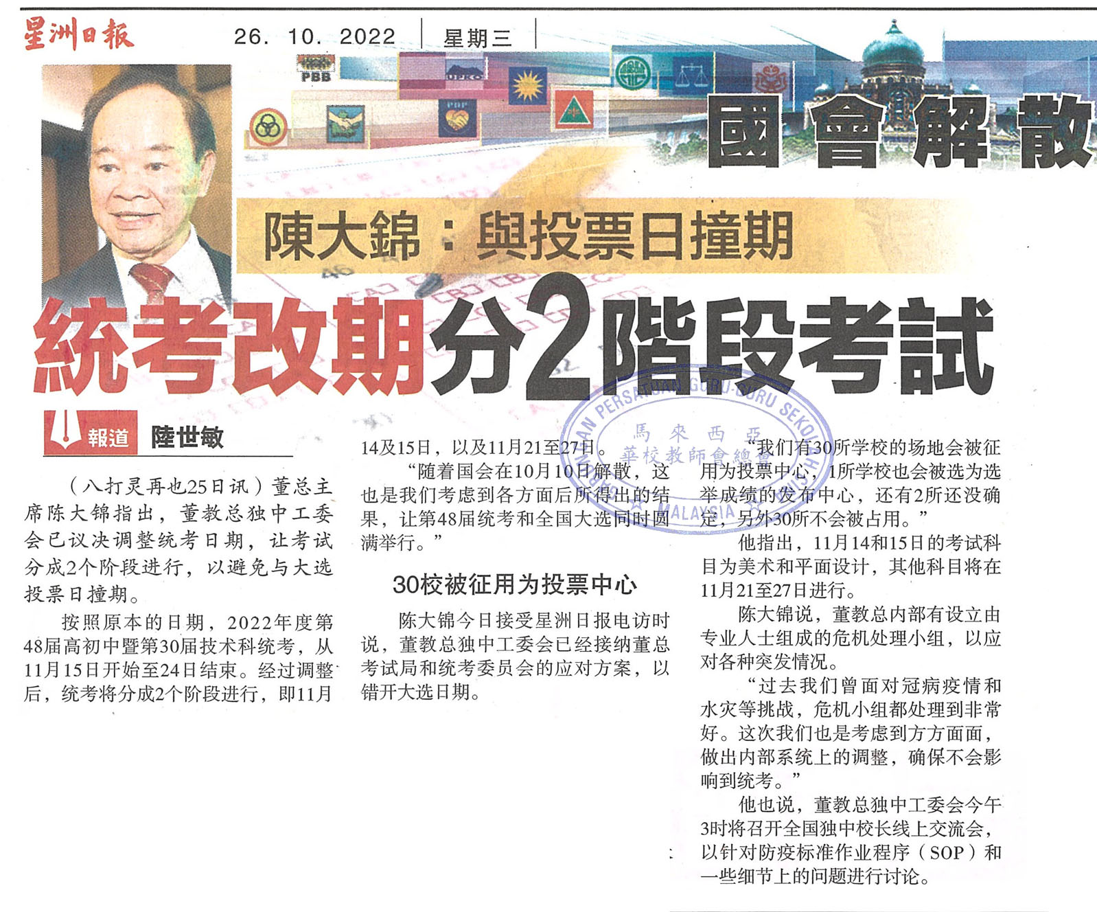 陈大锦:与投票日撞期 统考改期分2阶段考试