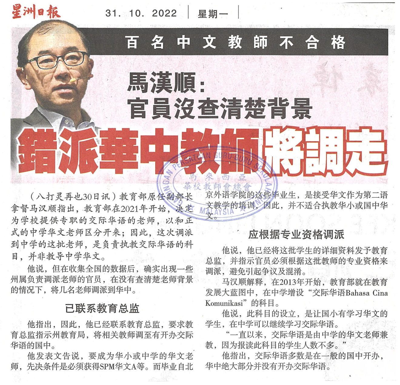 马汉顺:官员没查清楚背景 错派华中教师将调走