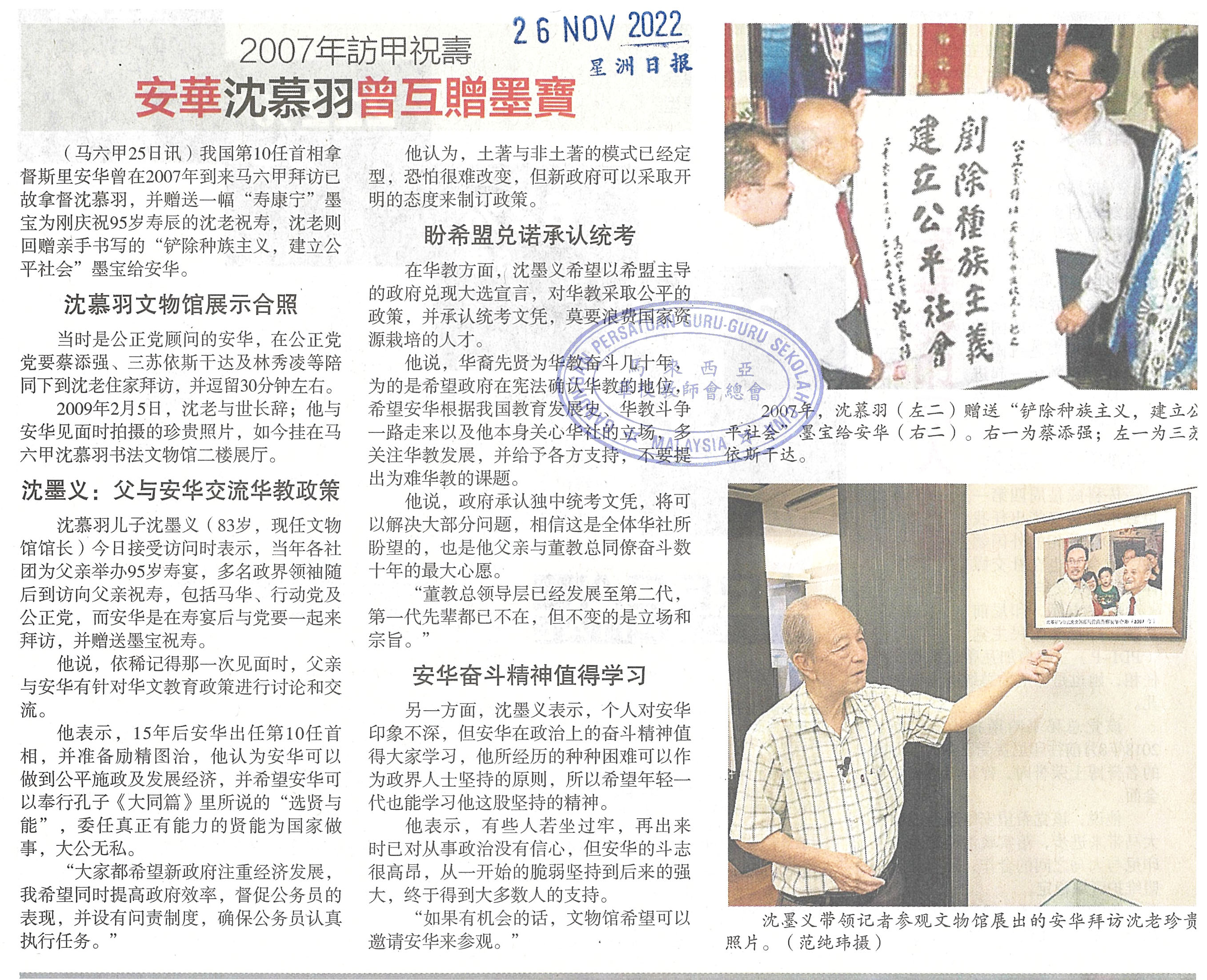2007年访甲祝寿 安华沈慕羽曾互赠墨宝