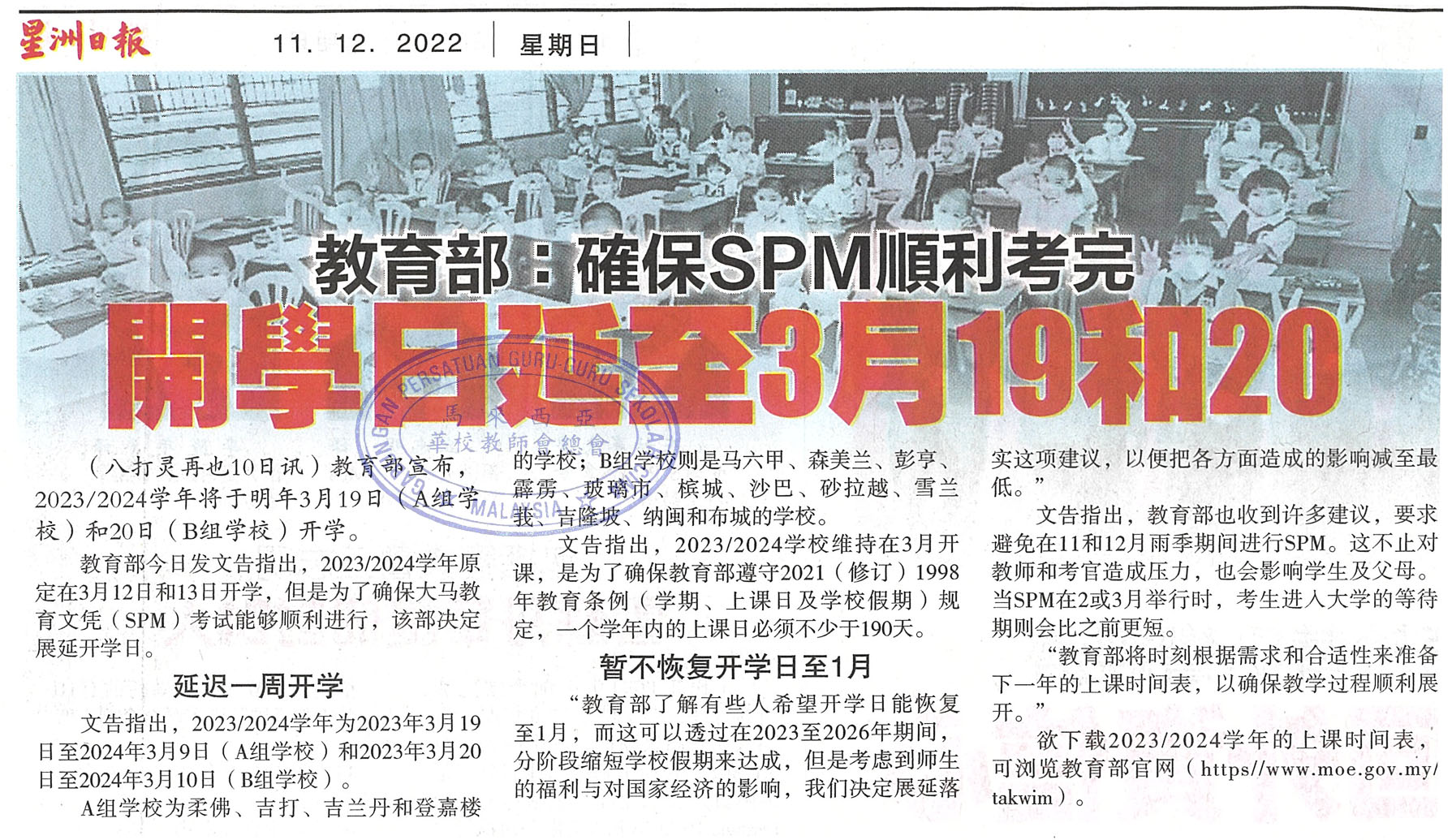 教育部:确保SPM顺利考完 开学日延至3月19和20