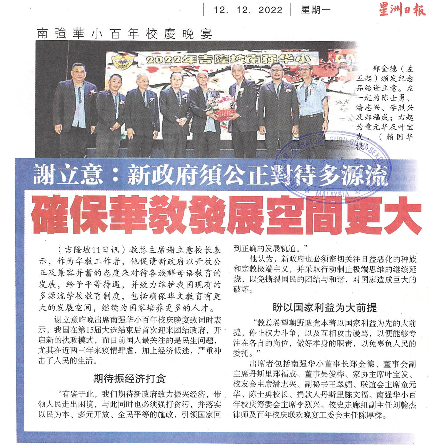 上一篇文章: 南强华小百年校庆 筹获60万超目标