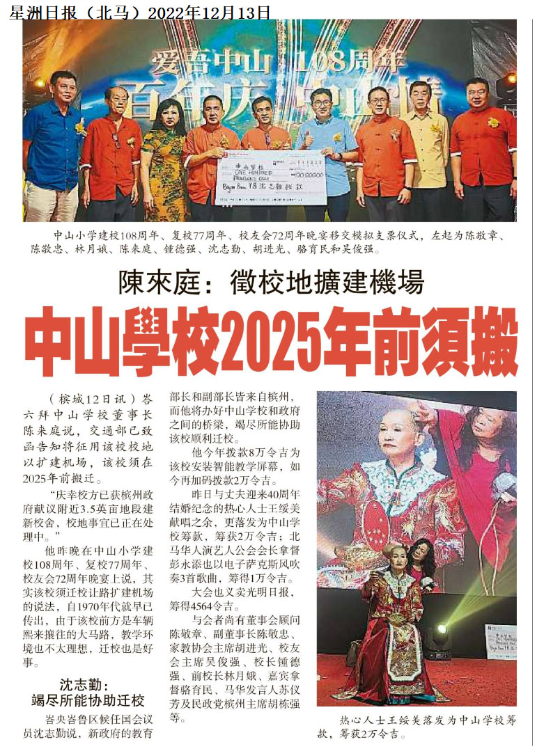 陈来庭:征校地扩建机场 中山学校2025年前须搬