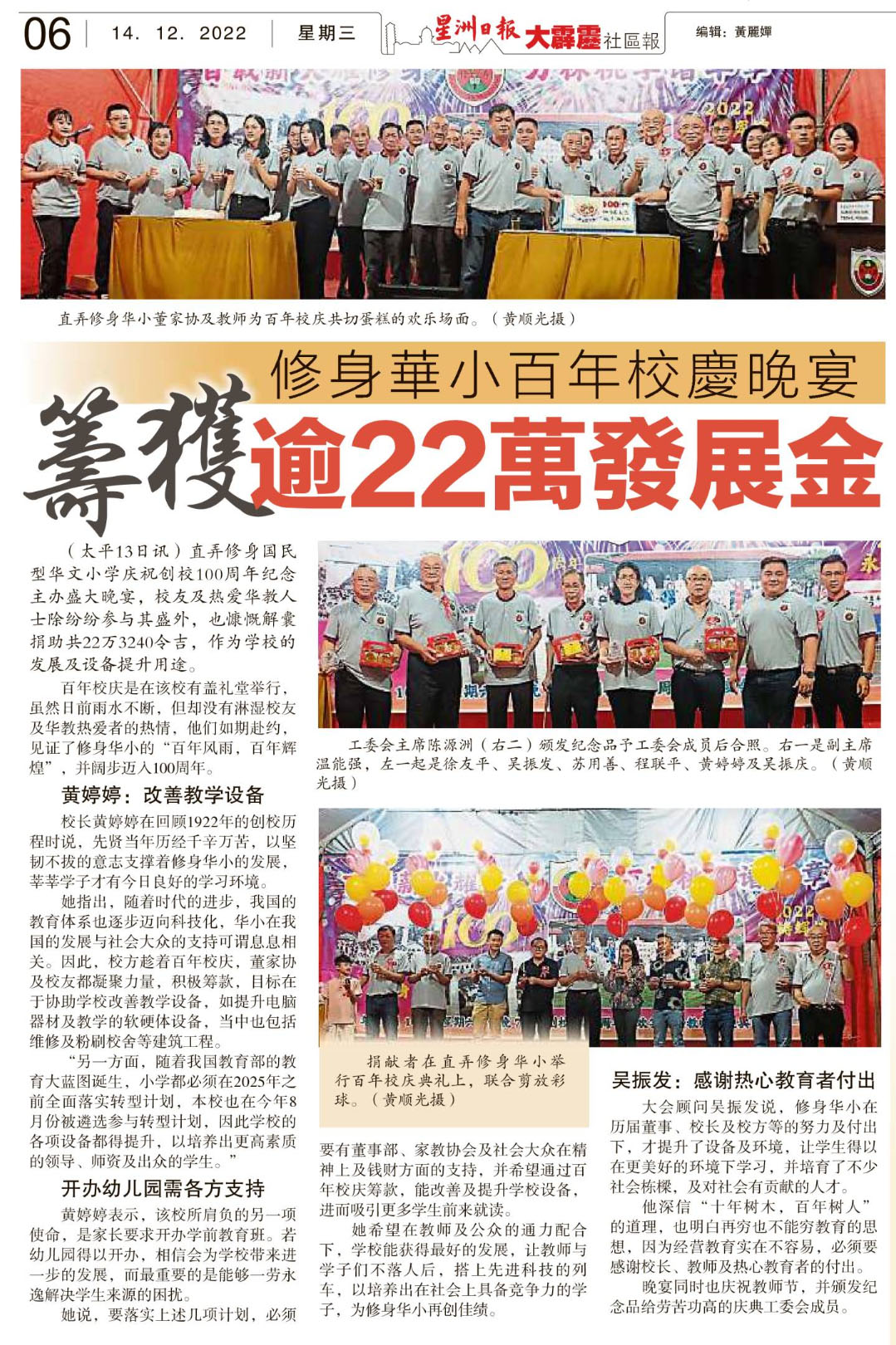 修身华小百年校庆晚宴 筹获逾22万发展金