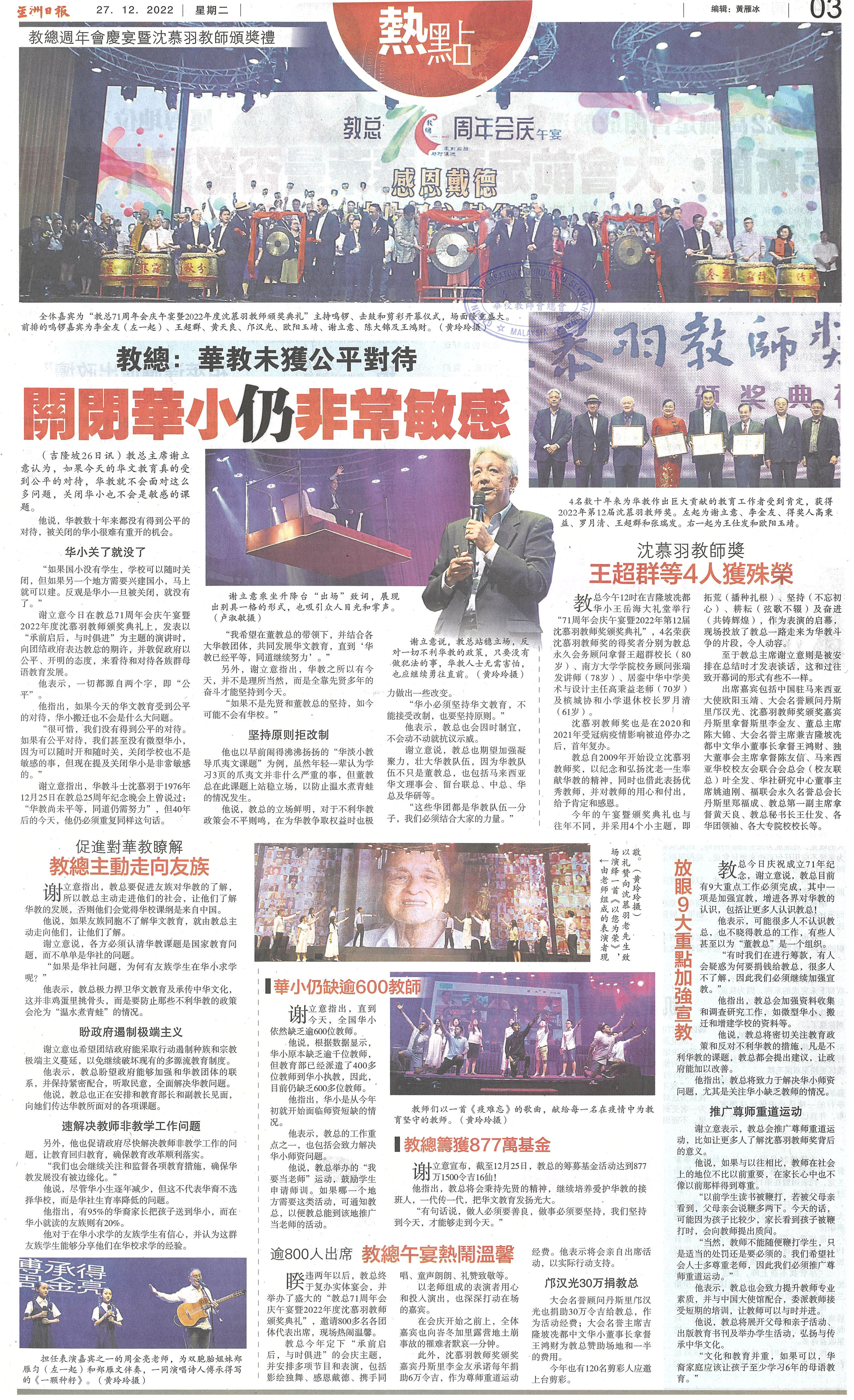 教总:华教未获公平对待 关闭华小仍非常敏感