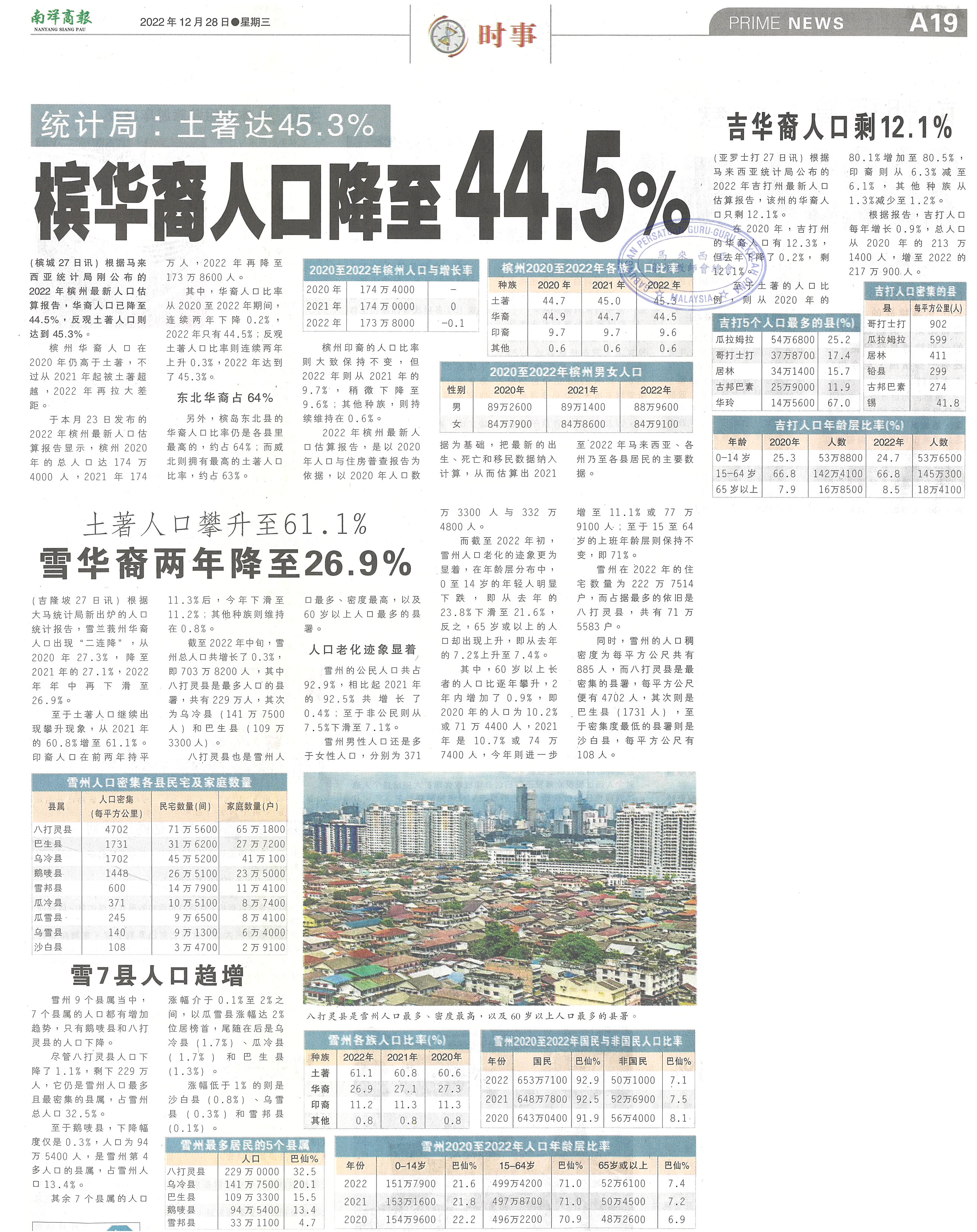统计局:土著达45.3% 槟华裔人口降至44.5%
