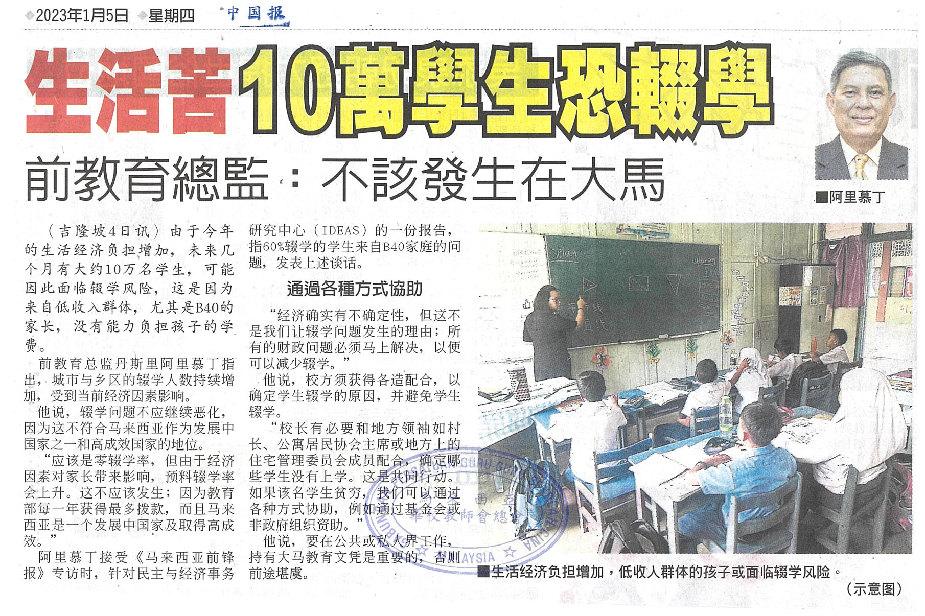 生活苦10万学生恐辍学 前教育总监:不该发生在大马
