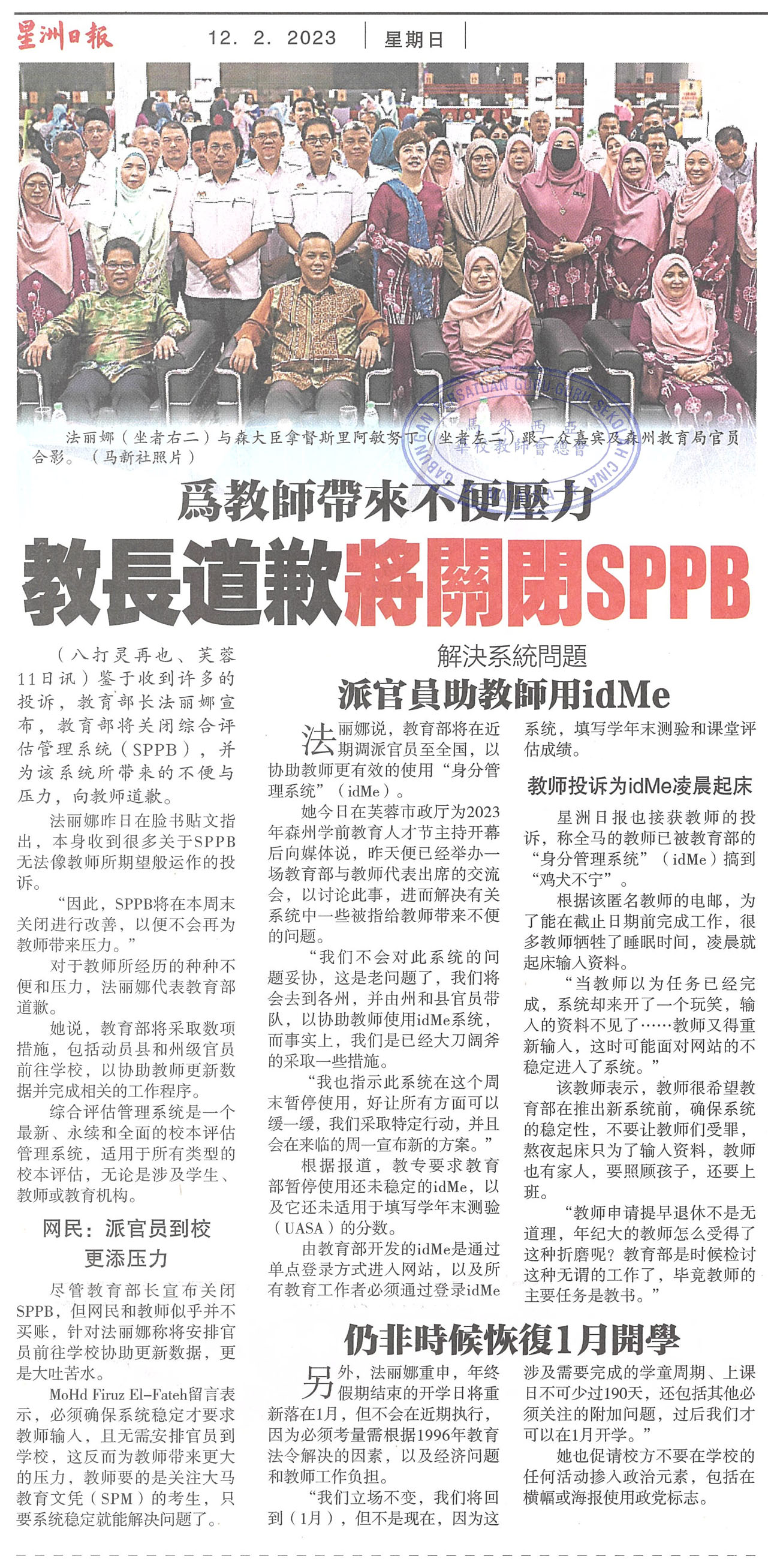 为教师带来不便压力 教长道歉将关闭SPPB