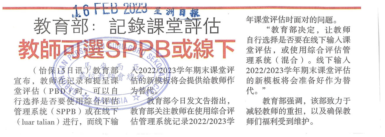 教育部:记录课堂评估 教师可选SPPB或线下