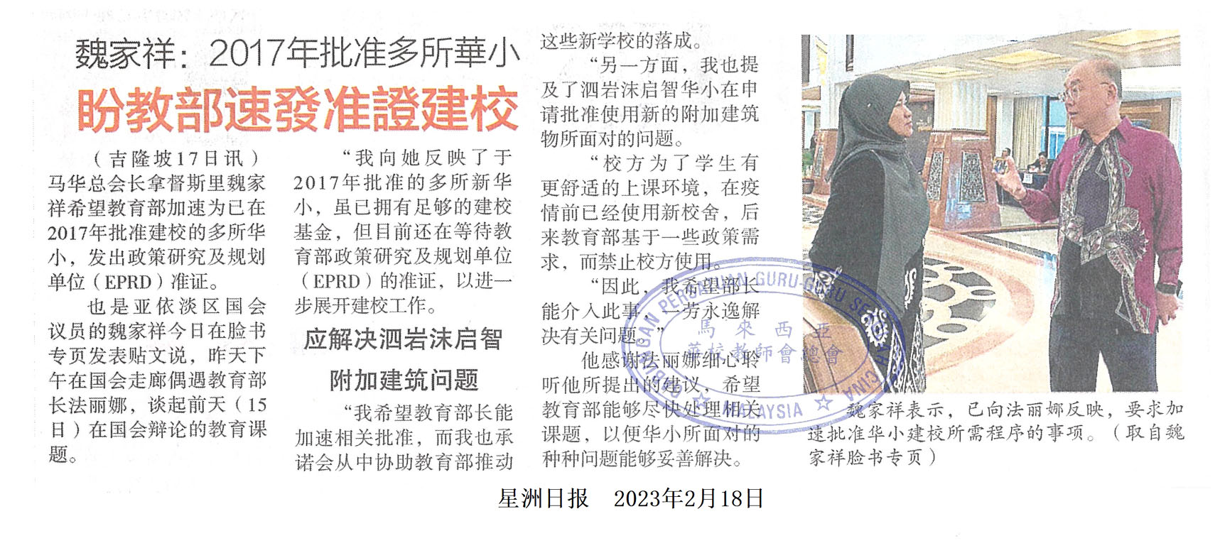 魏家祥:2017年批准多所华小 盼教育部速发准证建校