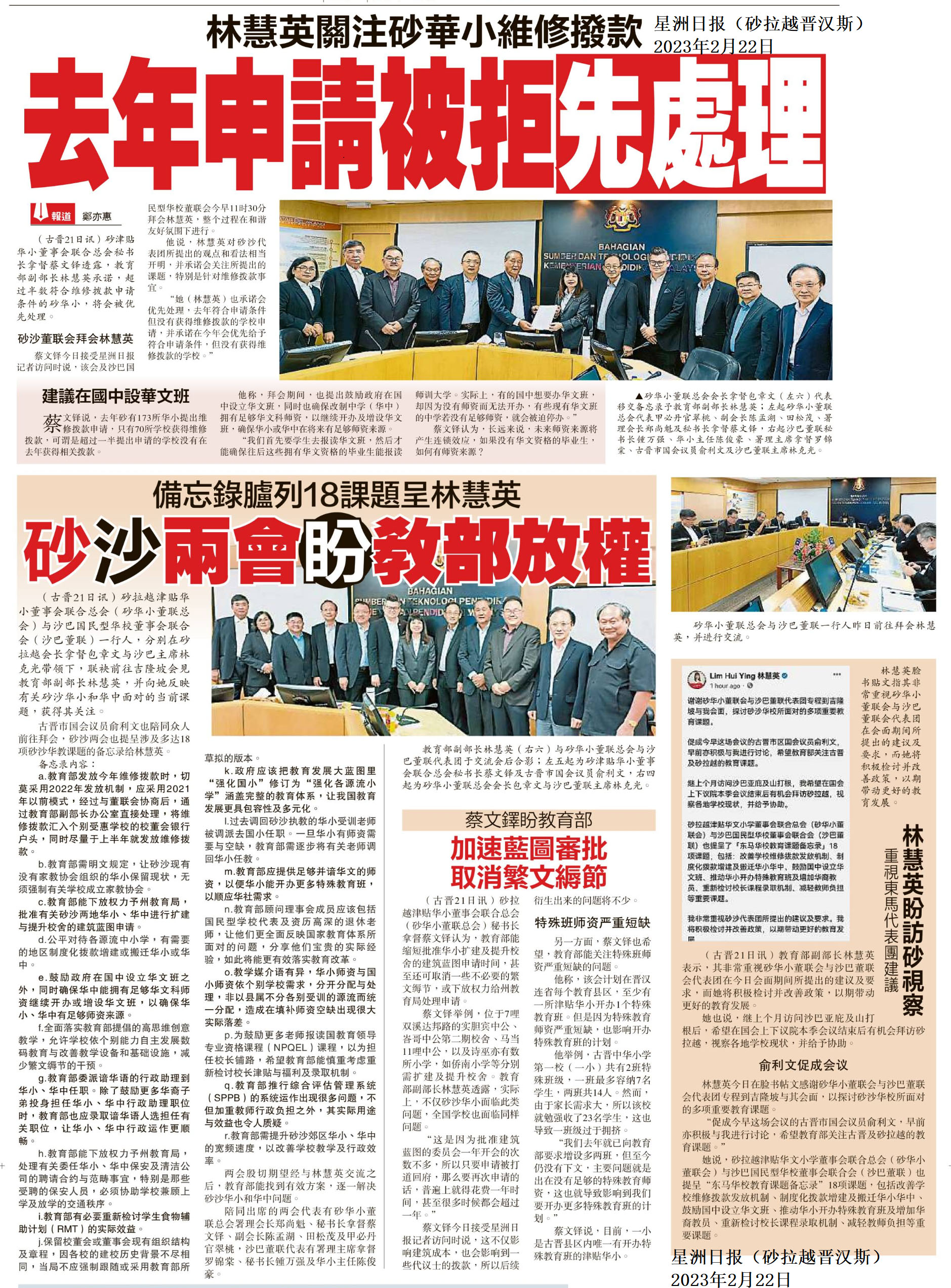 林慧英关注砂华小维修拨款 去年申请被拒先处理