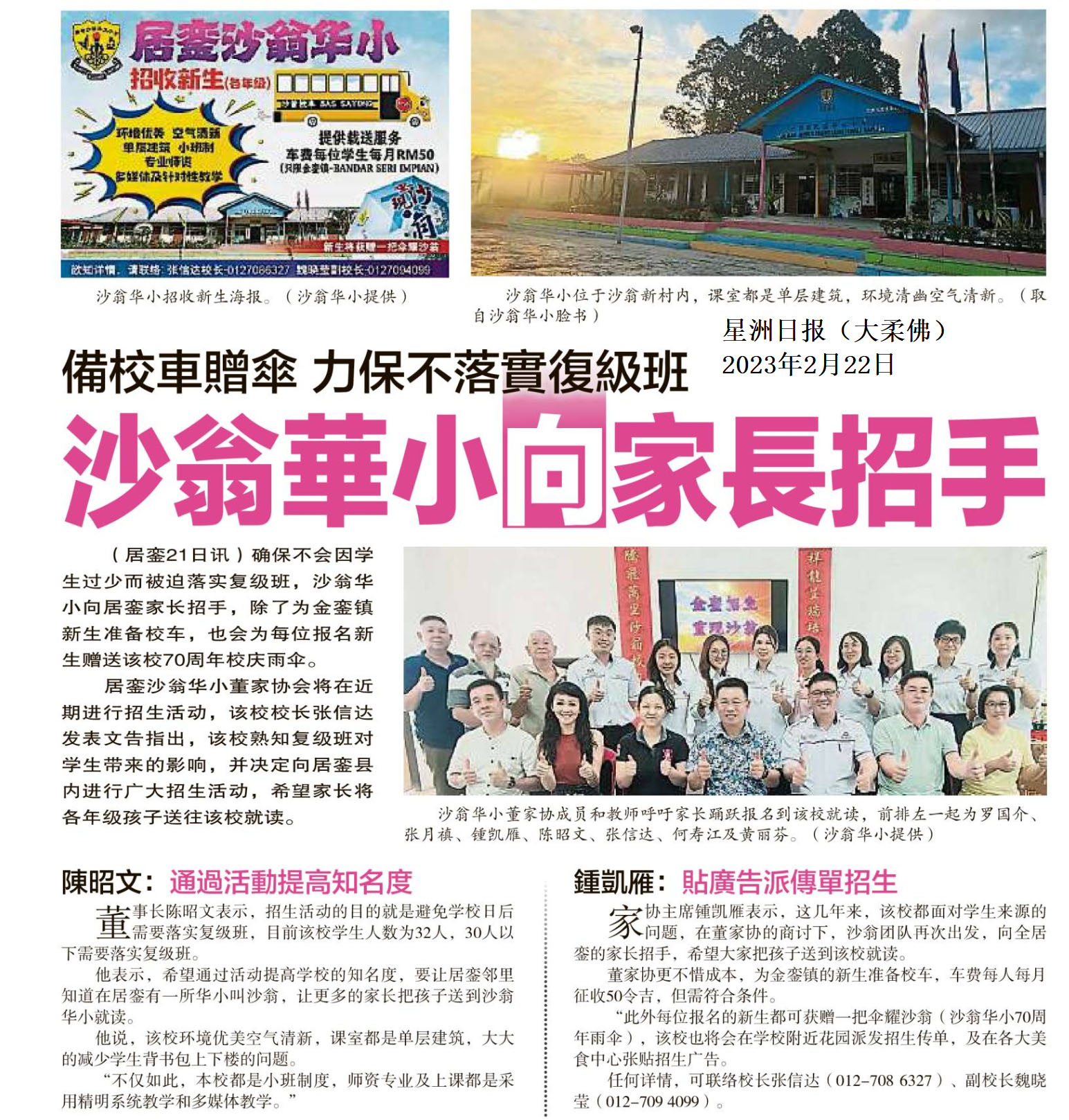 备校车赠伞 力保不落实复级班 沙翁华小向家长招手