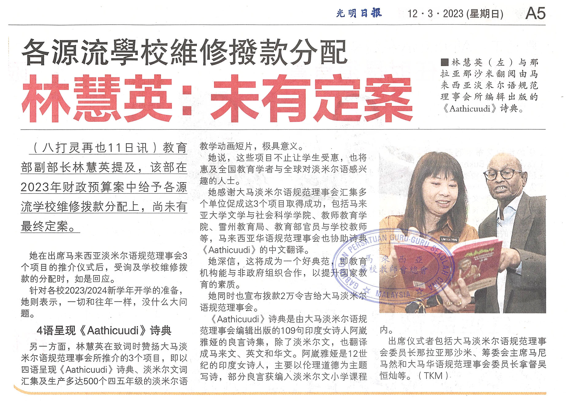 各源流学校维修拨款分配 林慧英:未有定案