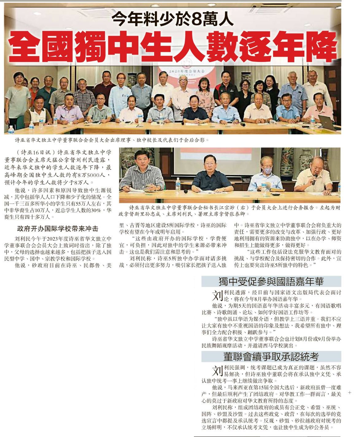今年料少于8万人 全国独中生人数逐年降