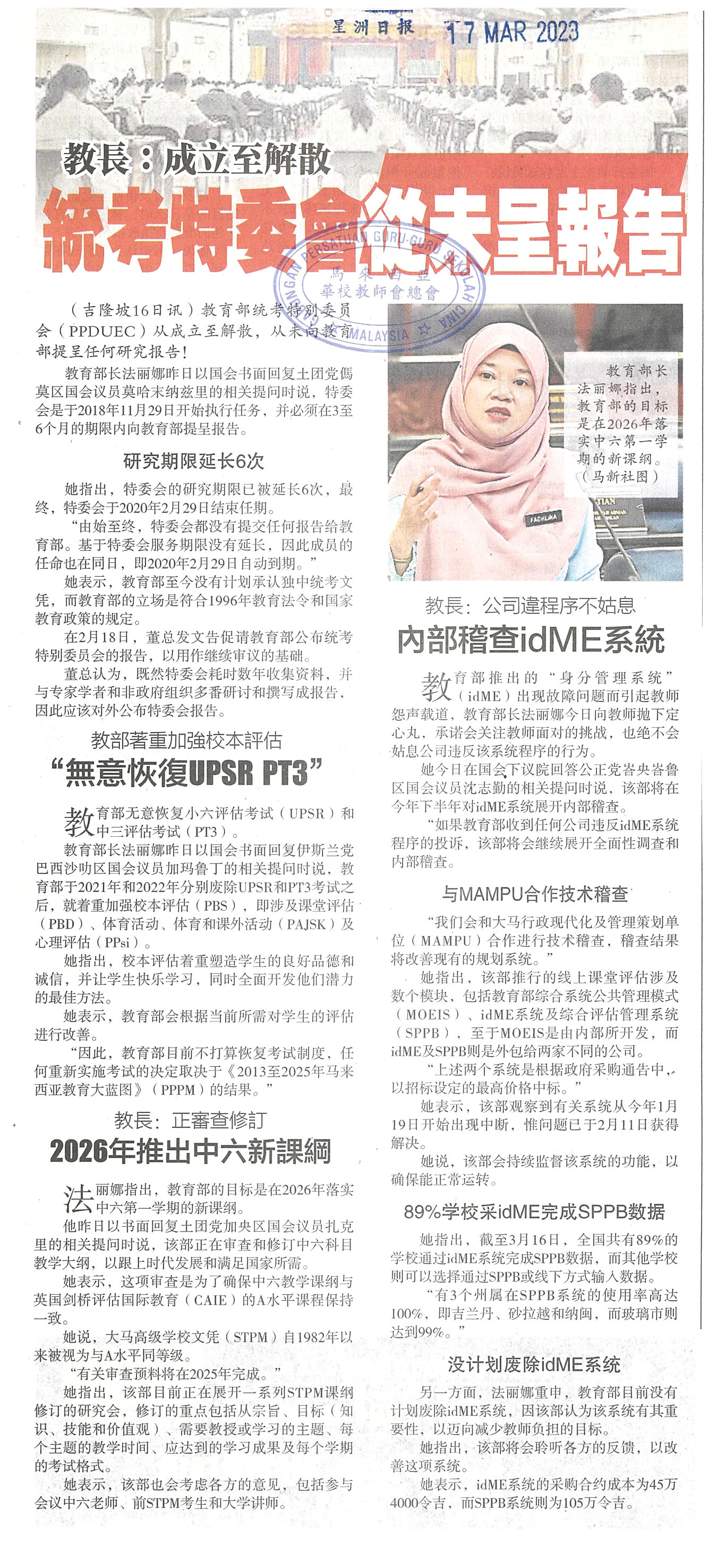 下一篇文章: 邱武英:3原因致未提交 愿呈统考报告给2部长