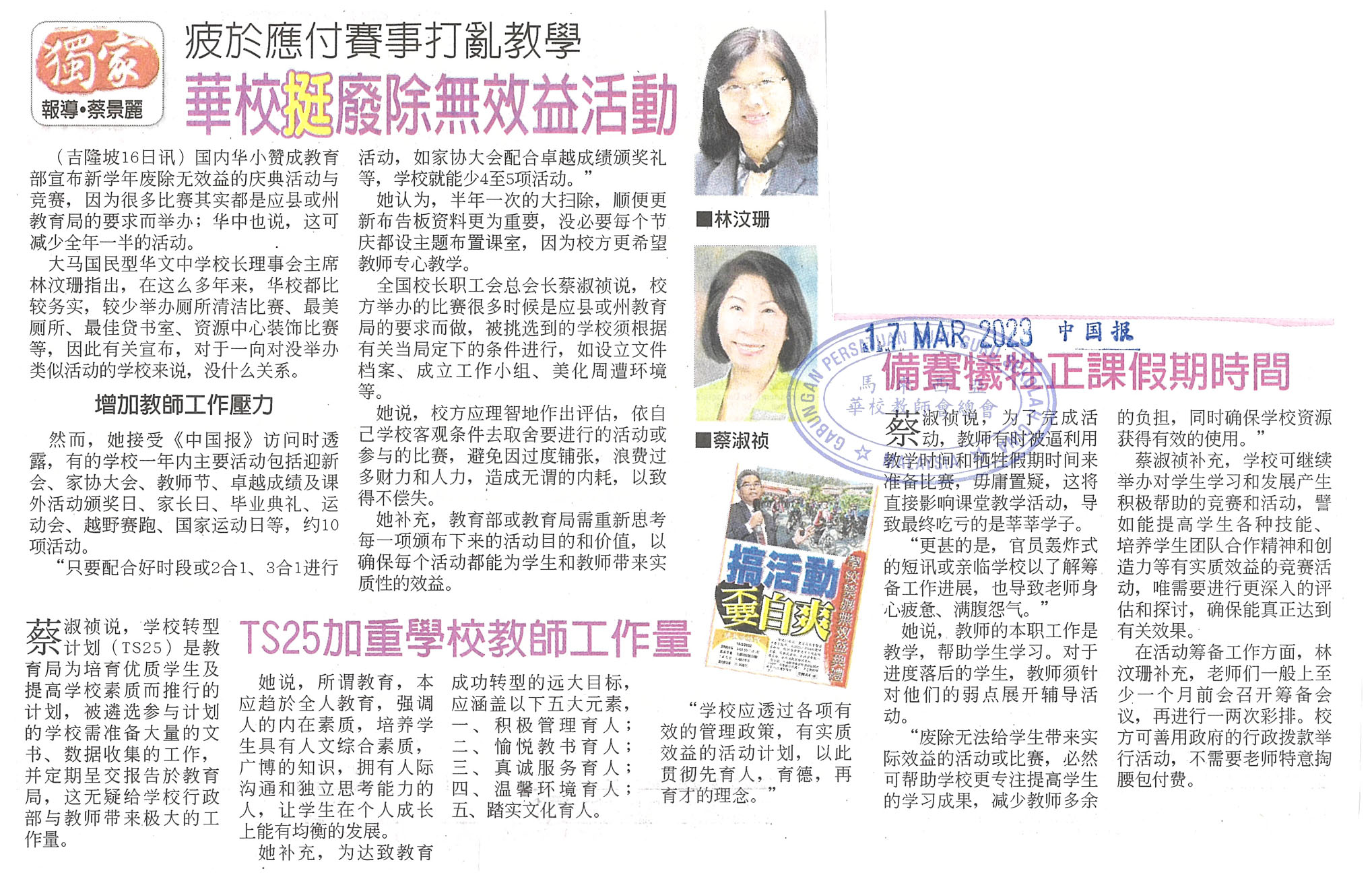 疲于应付赛事打乱教学 华校挺废除无效益活动