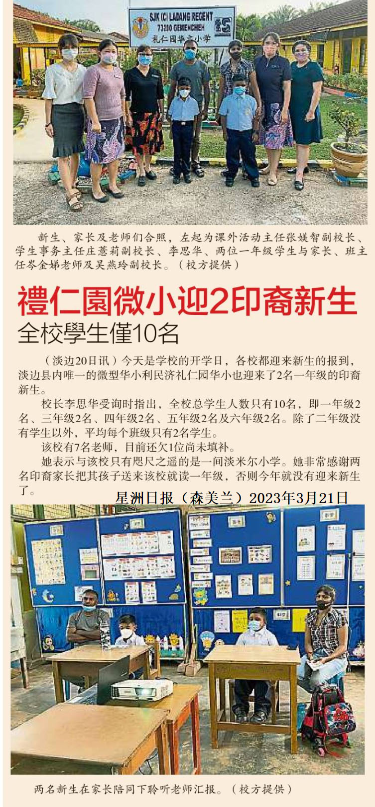 礼仁园微小迎2印裔新生 全校学生仅10名