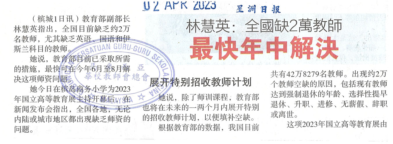 上一篇文章: 陈大锦:解决师荒不仅靠教育部 华社应鼓励报读师范
