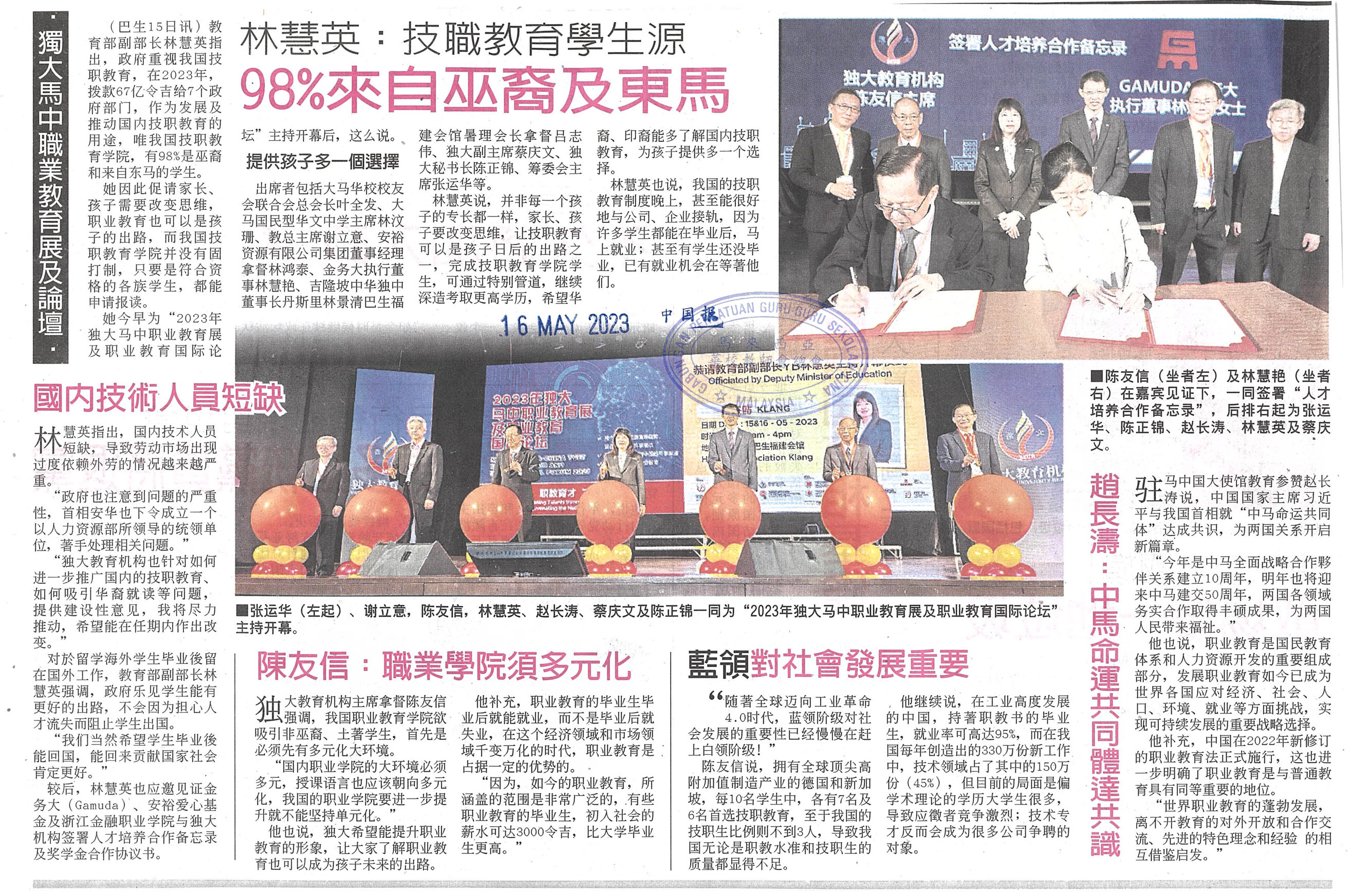 林慧英:技职教育学生源 98%来自巫裔及东马