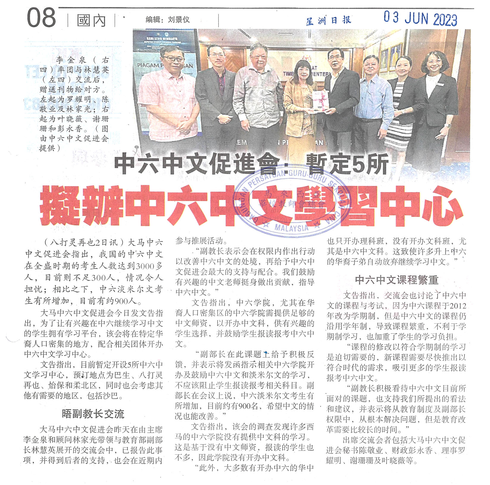 中六中文促进会:暂定5所 拟办中六中文学习中心 WhatsApp 上一篇文章: 舒缓班丹中华华小交通 雪拨290万提升校外要道 上一页 下一篇文章: 锺才安研发易学马来文音节 语文游戏卡 国际赛摘金 下一页