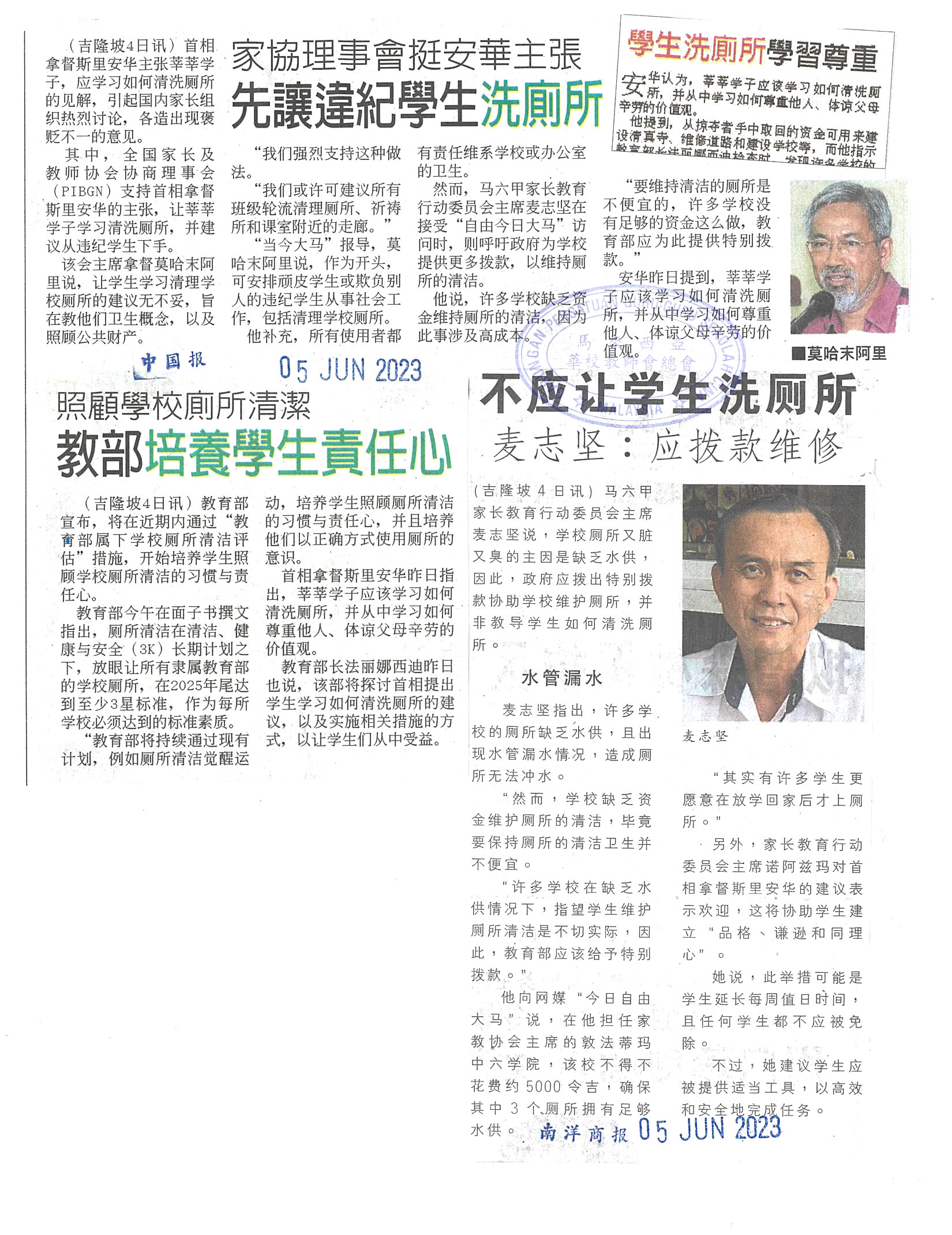 教育部:提升清洁培养责任心 学生洗厕所近期落实