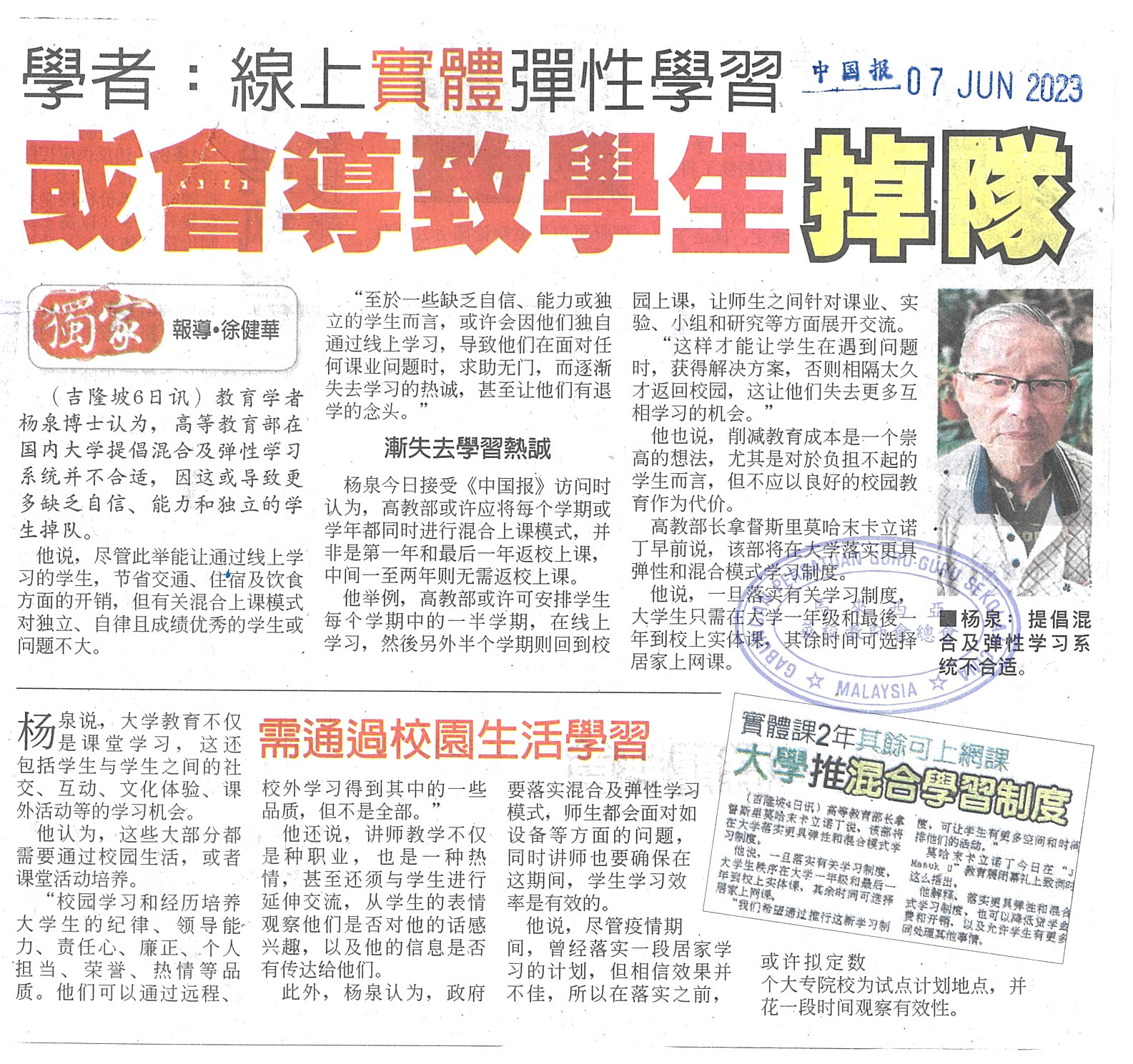 上一篇文章: 陈洺臣:不仅南院里程碑 设中文学院华社成就