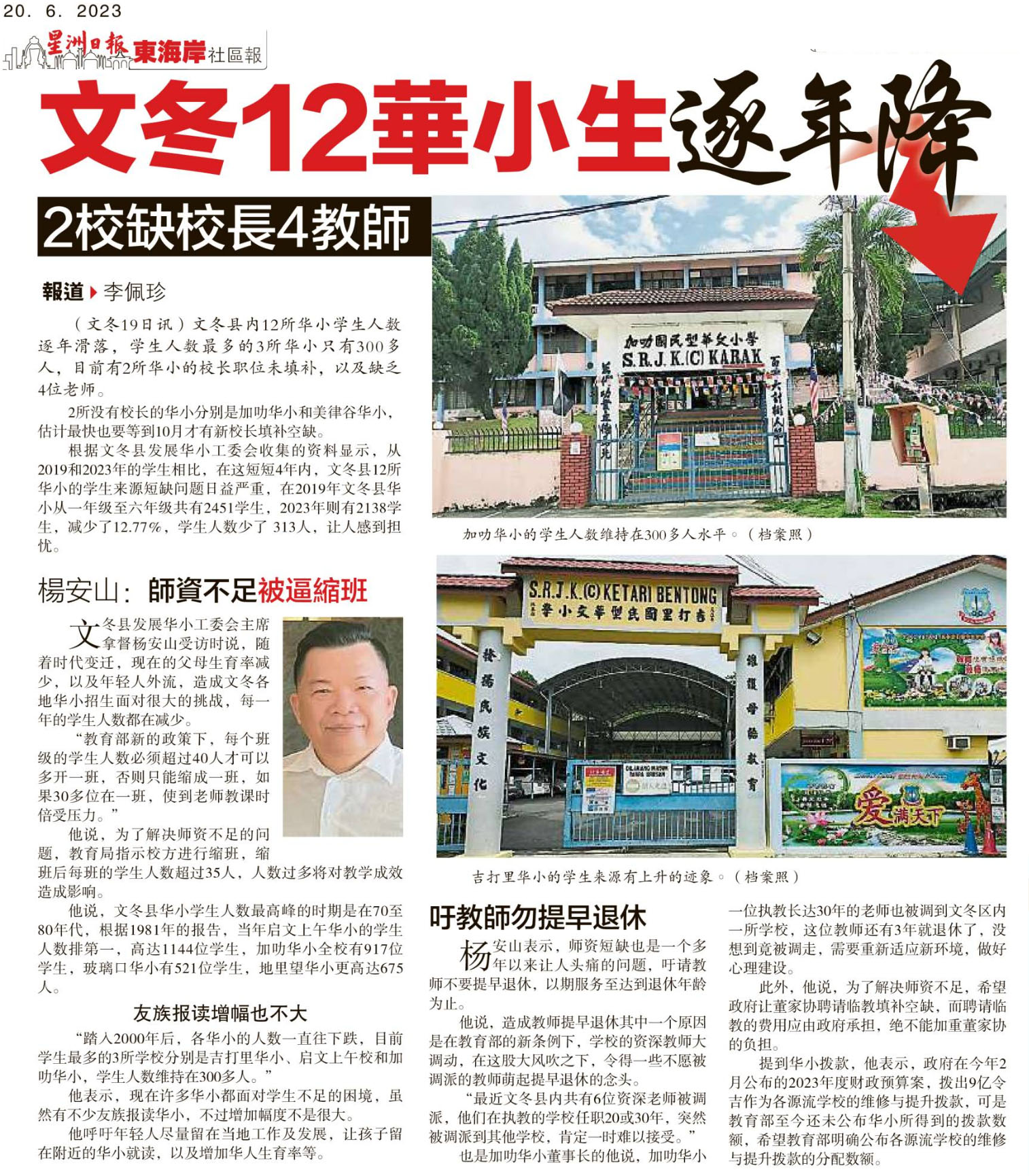 文冬12华小生逐年降 2校缺校长4教师